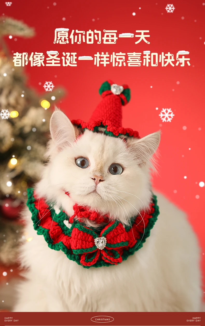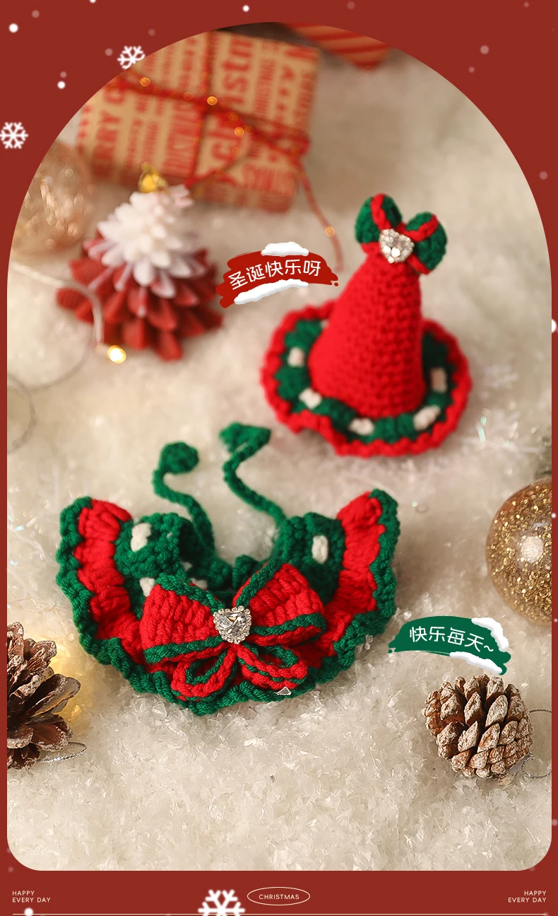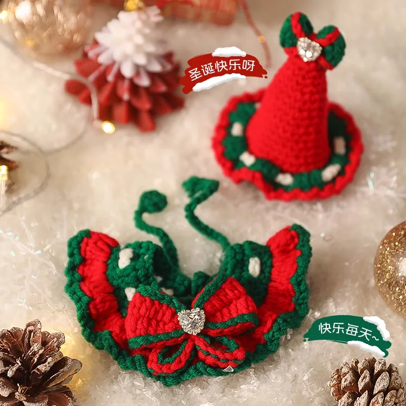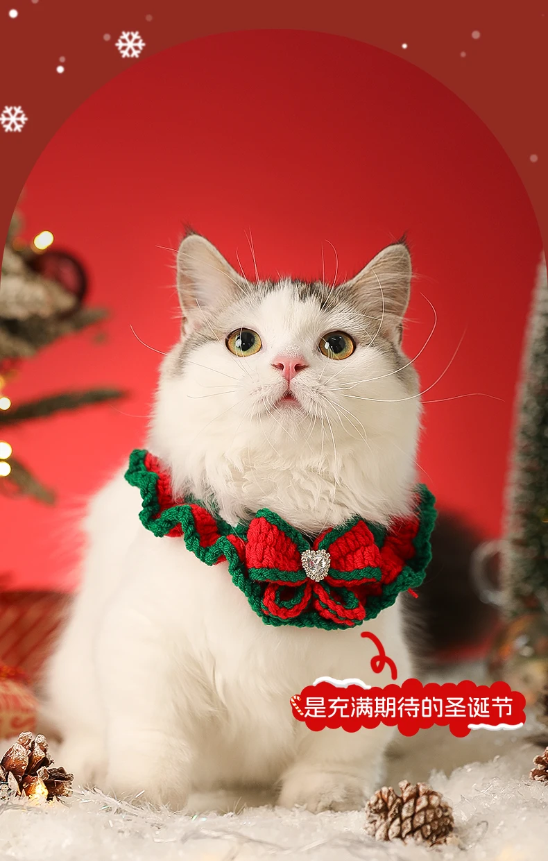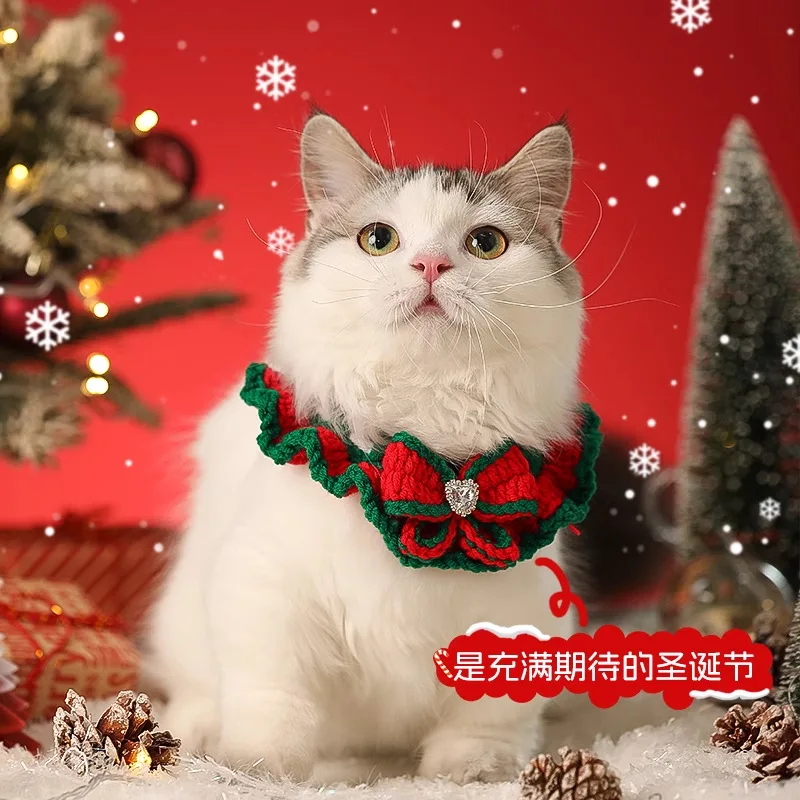 Bufanda para mascotas de otoño e invierno, bonito Collar con lazo, accesorios para gatos, babero, sombrero para gatos, bufanda para perros, accesorios navideños para perros pequeños
