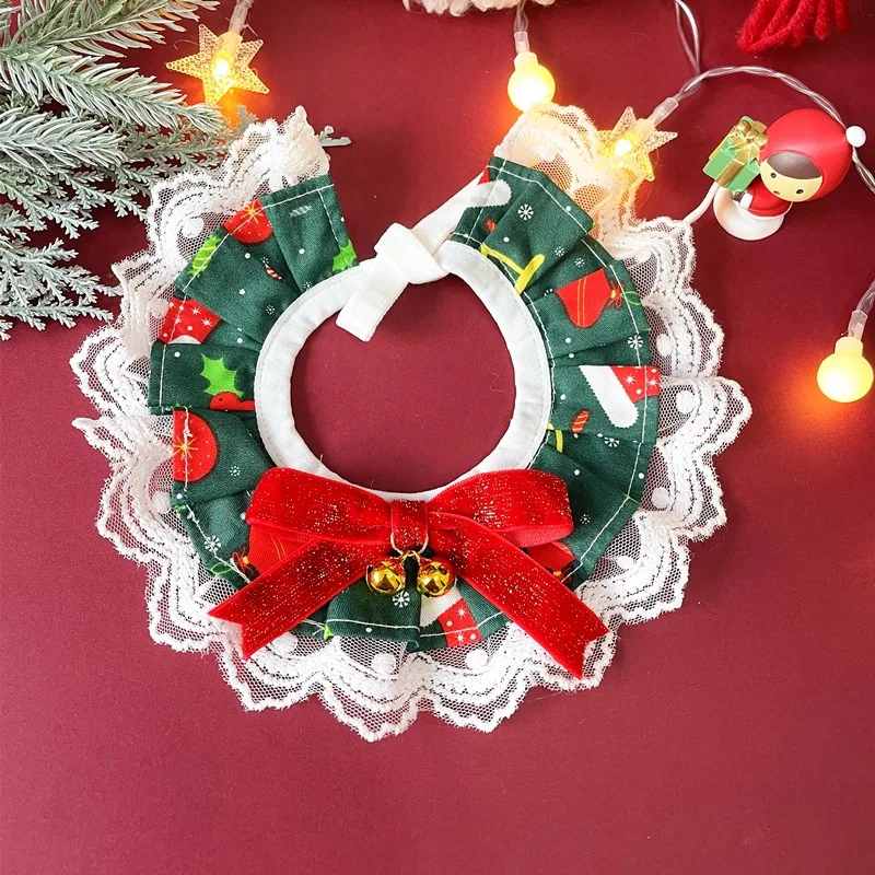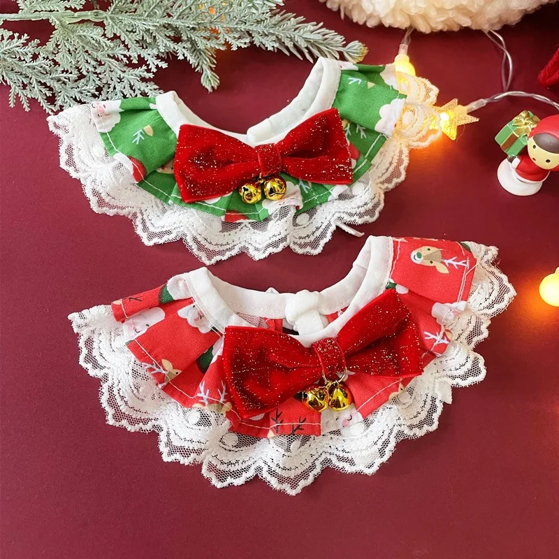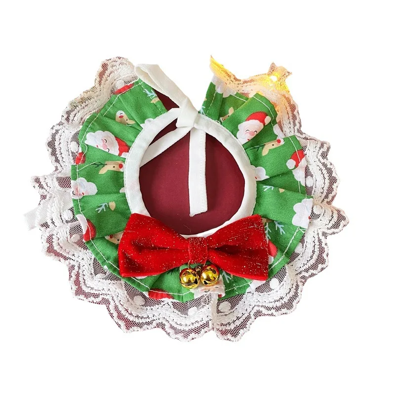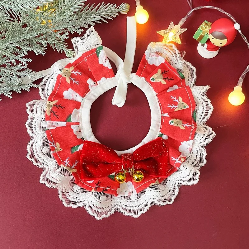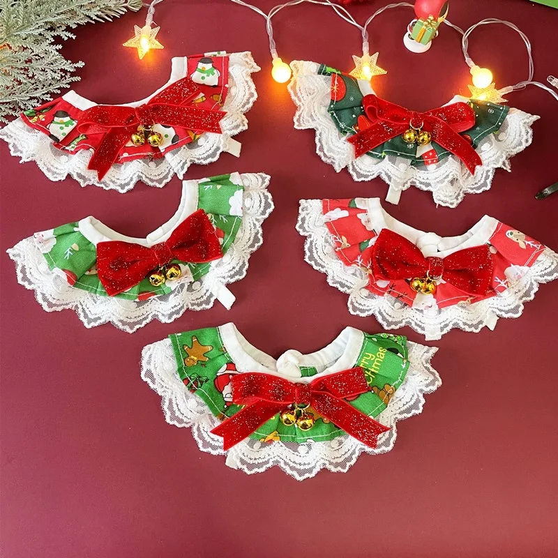 Bufanda navideña con campana de encaje para perros y gatos, toalla ajustable para babas, suministros para fiestas, babero de encaje, accesorios para mascotas para perros pequeños y cachorros