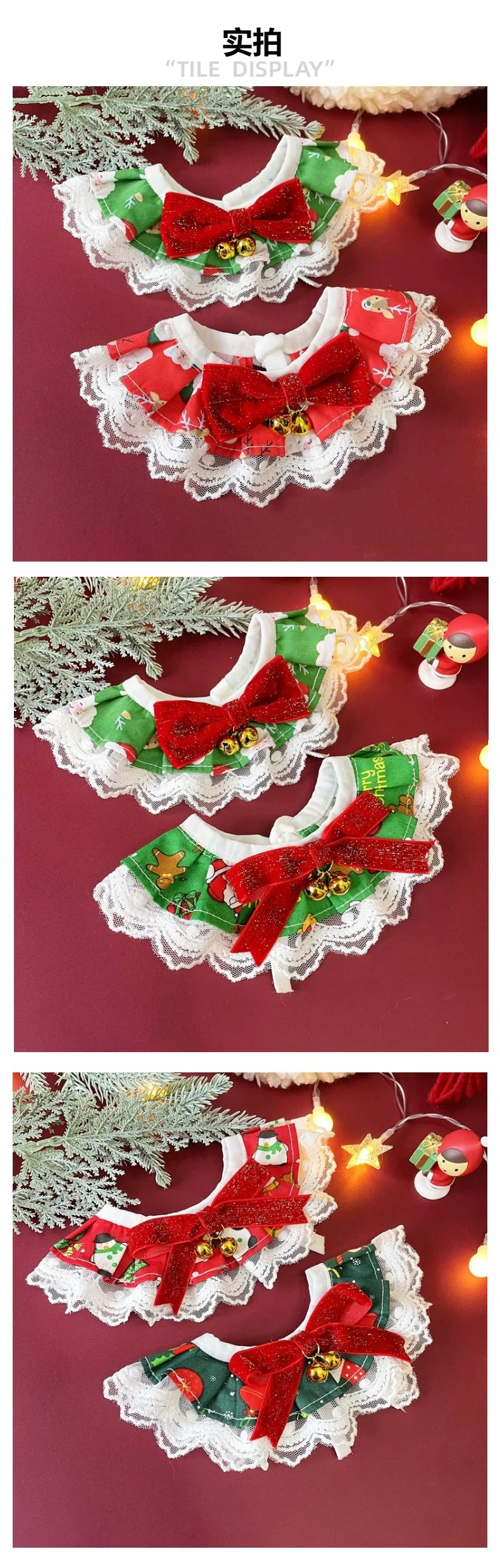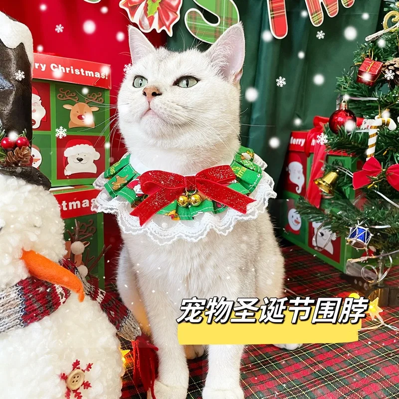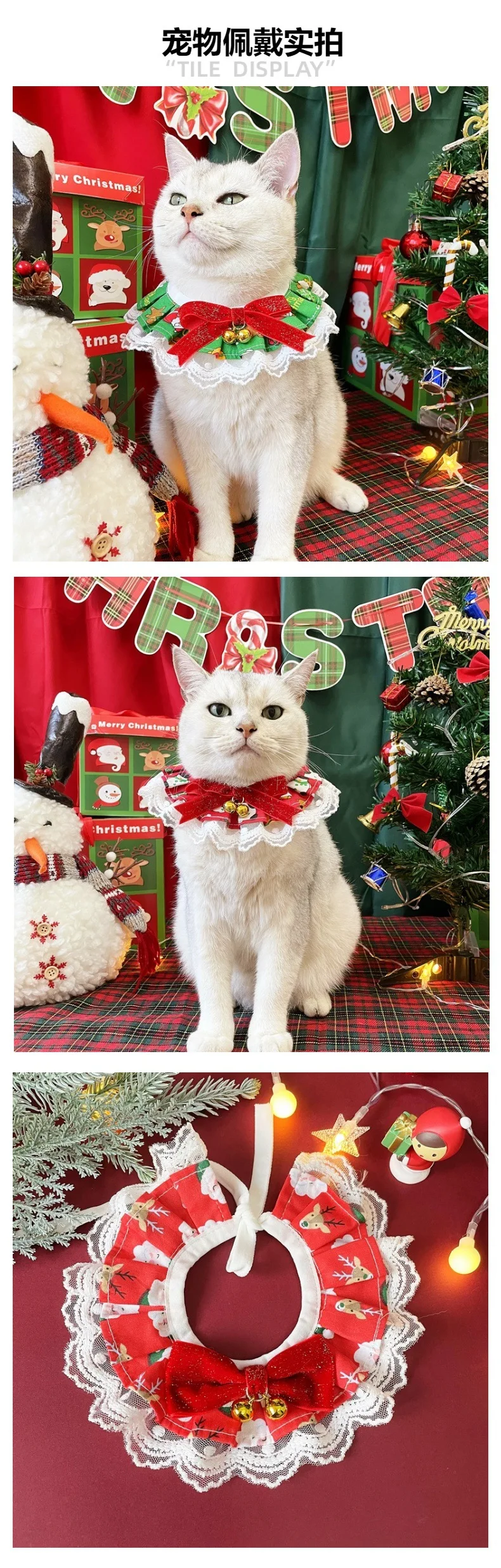 Bufanda navideña con campana de encaje para perros y gatos, toalla ajustable para babas, suministros para fiestas, babero de encaje, accesorios para mascotas para perros pequeños y cachorros