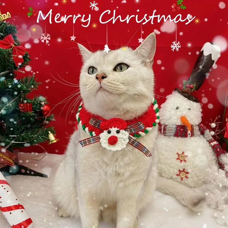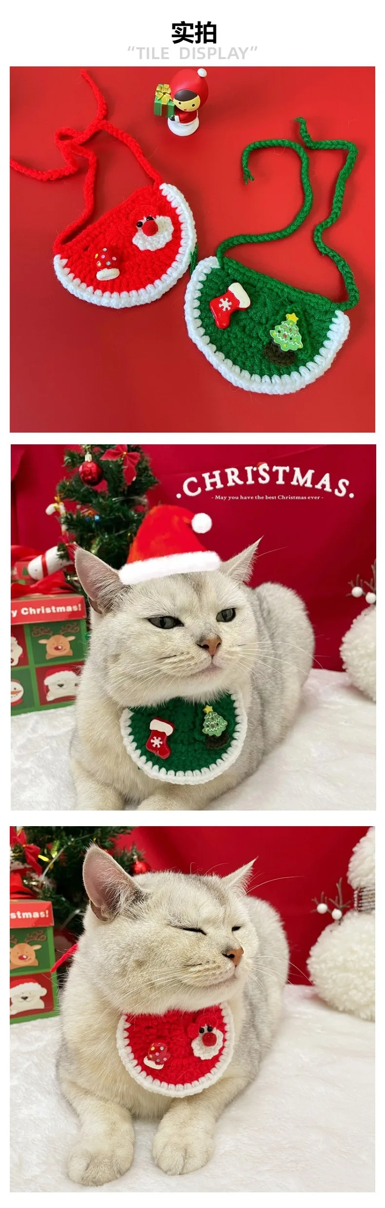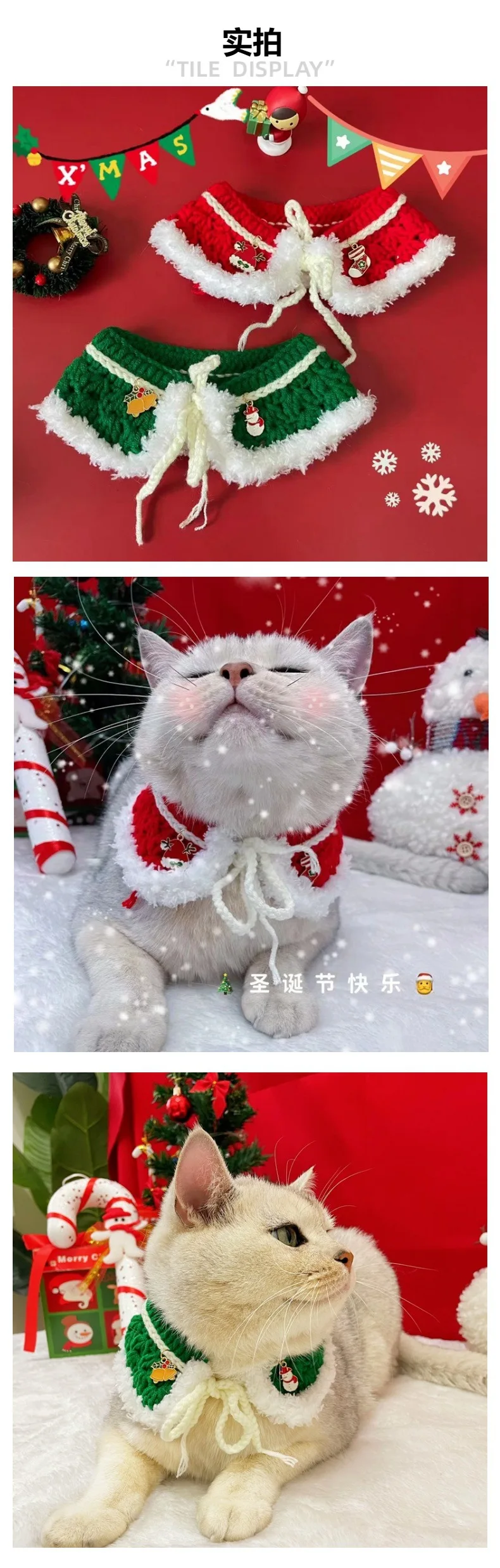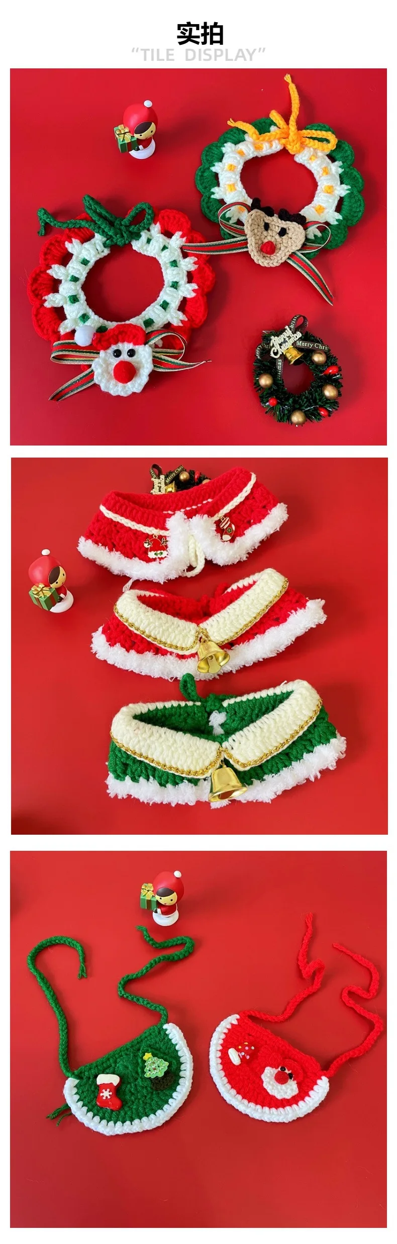 Bufanda navideña para gatos para mascotas, capa de retales de felpa tejida a mano, accesorio decorativo para anillo para el cuello para perros pequeños y medianos