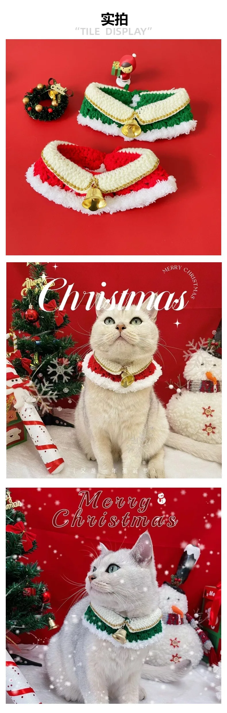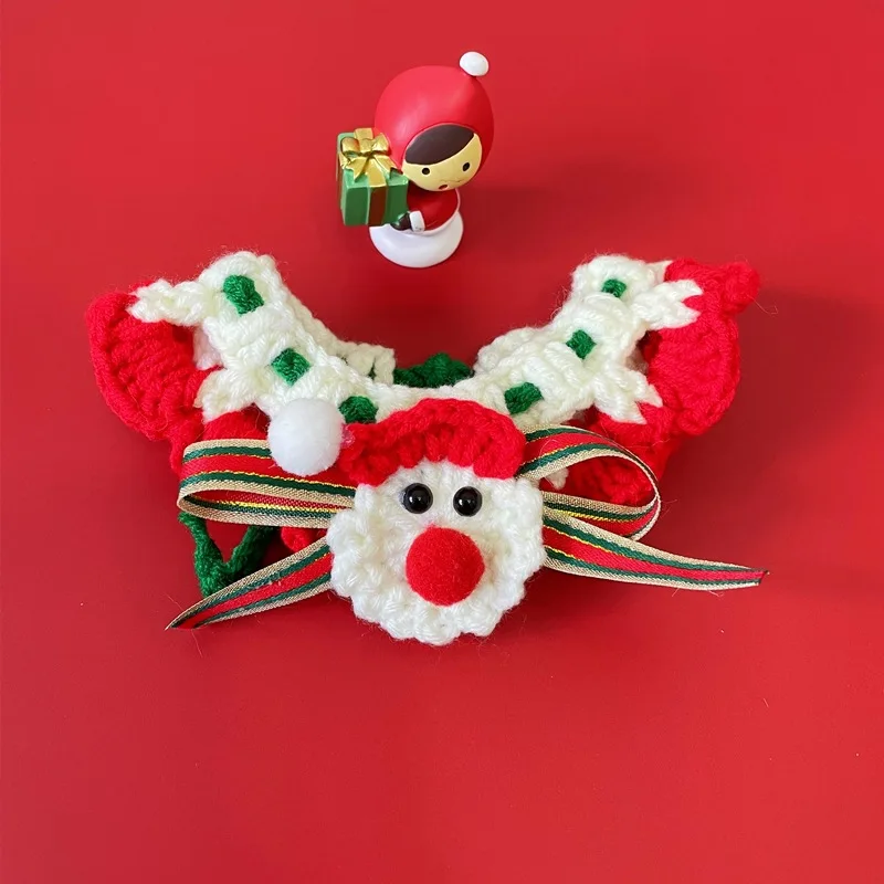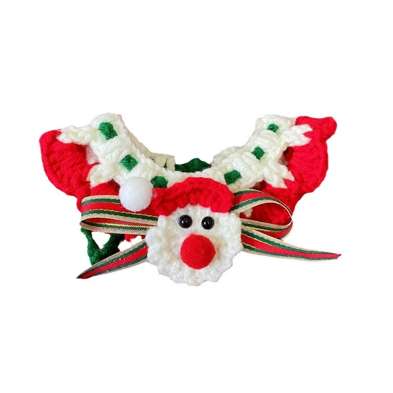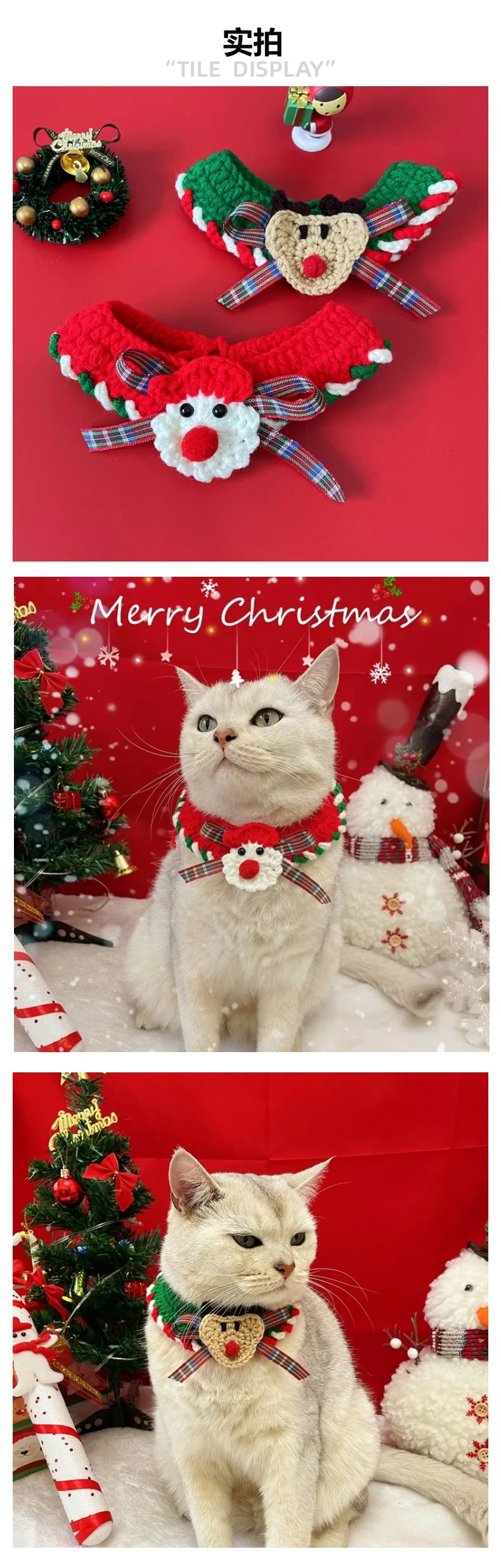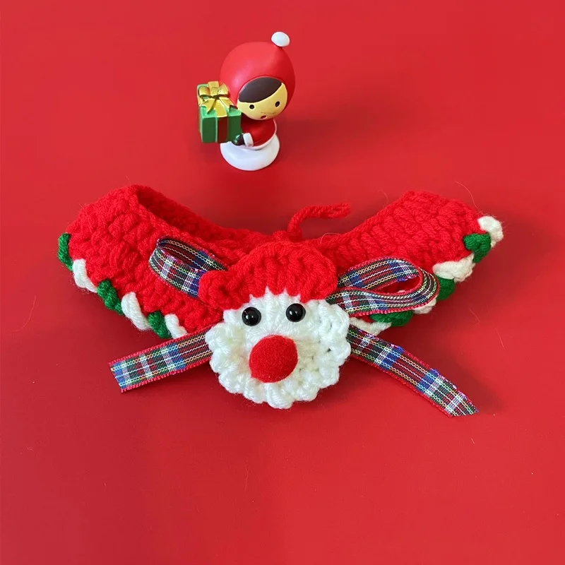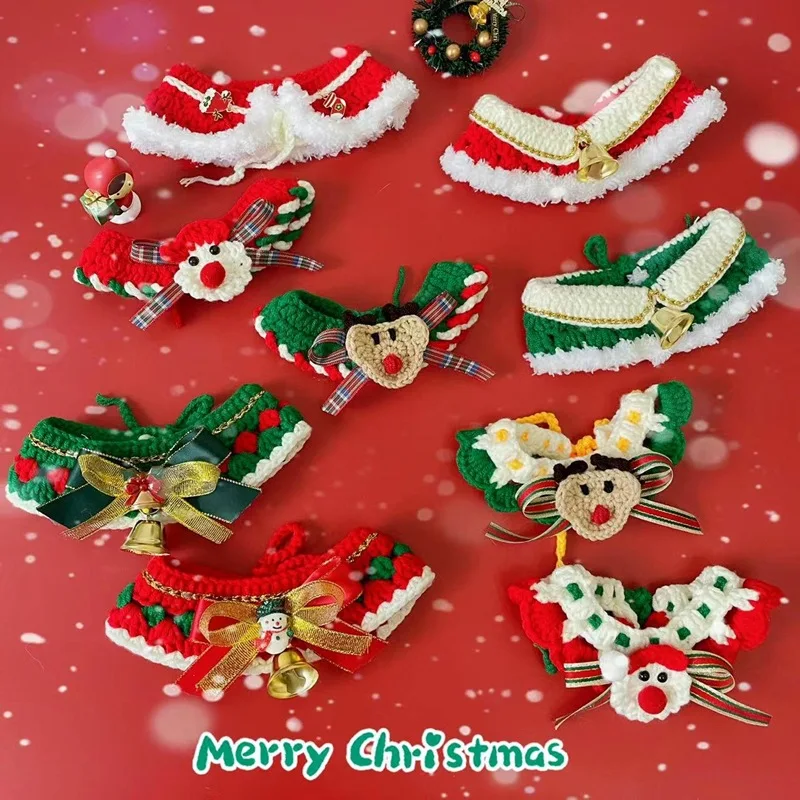 Bufanda navideña para gatos para mascotas, capa de retales de felpa tejida a mano, accesorio decorativo para anillo para el cuello para perros pequeños y medianos