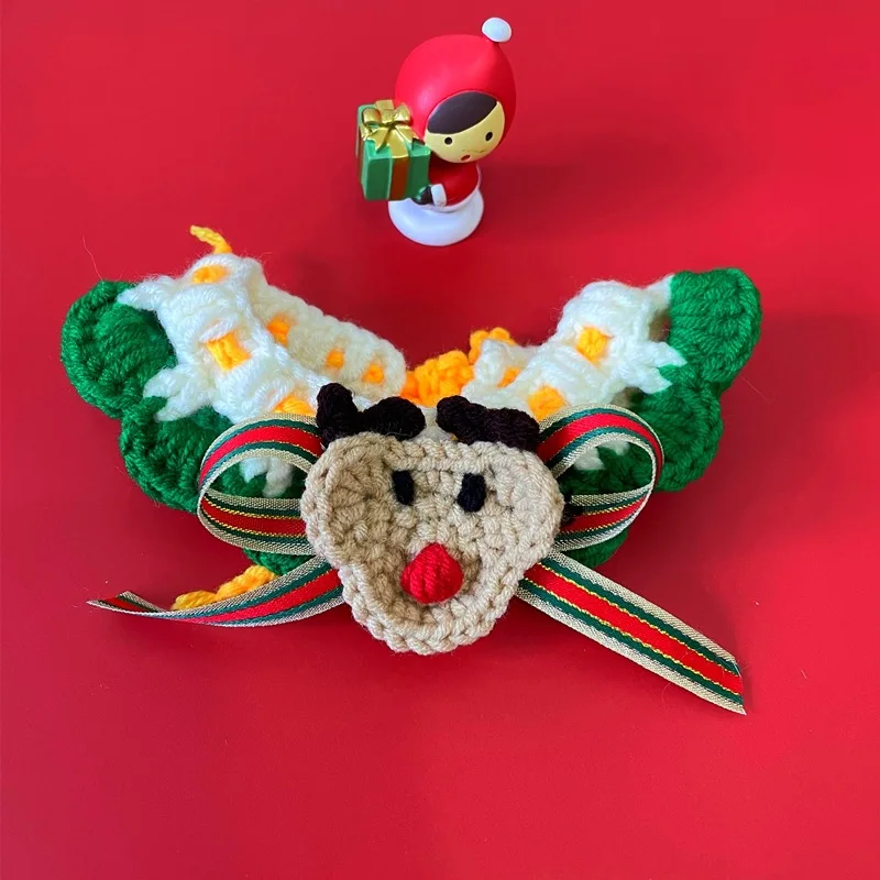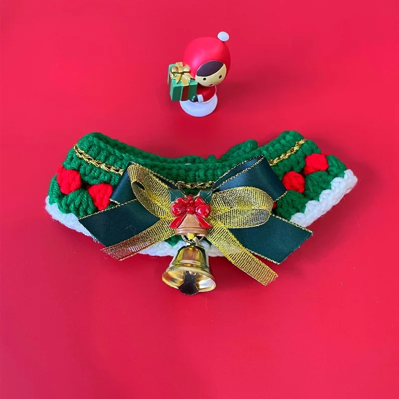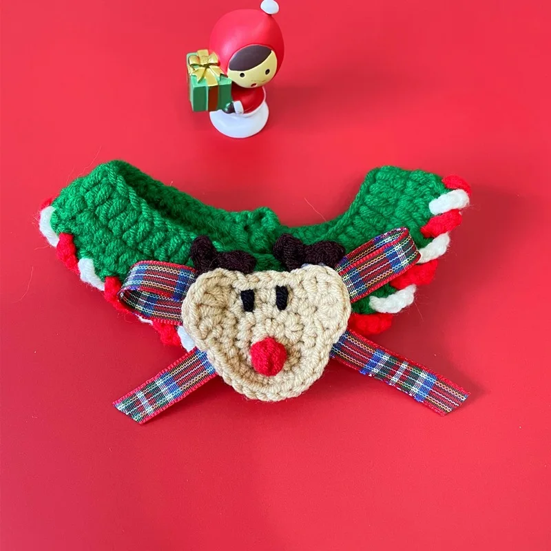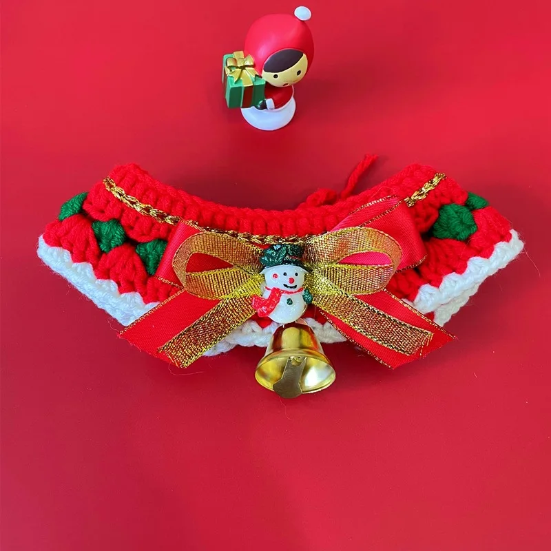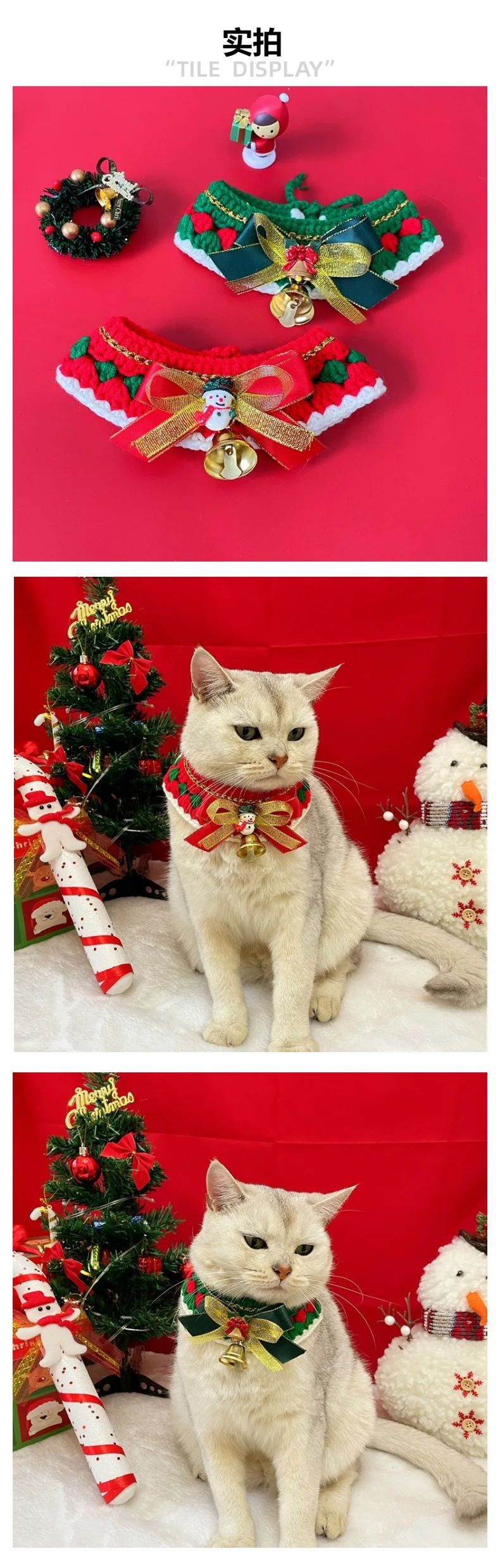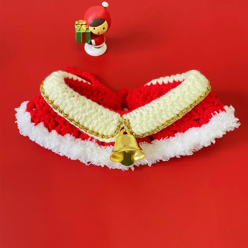 Bufanda navideña para gatos para mascotas, capa de retales de felpa tejida a mano, accesorio decorativo para anillo para el cuello para perros pequeños y medianos