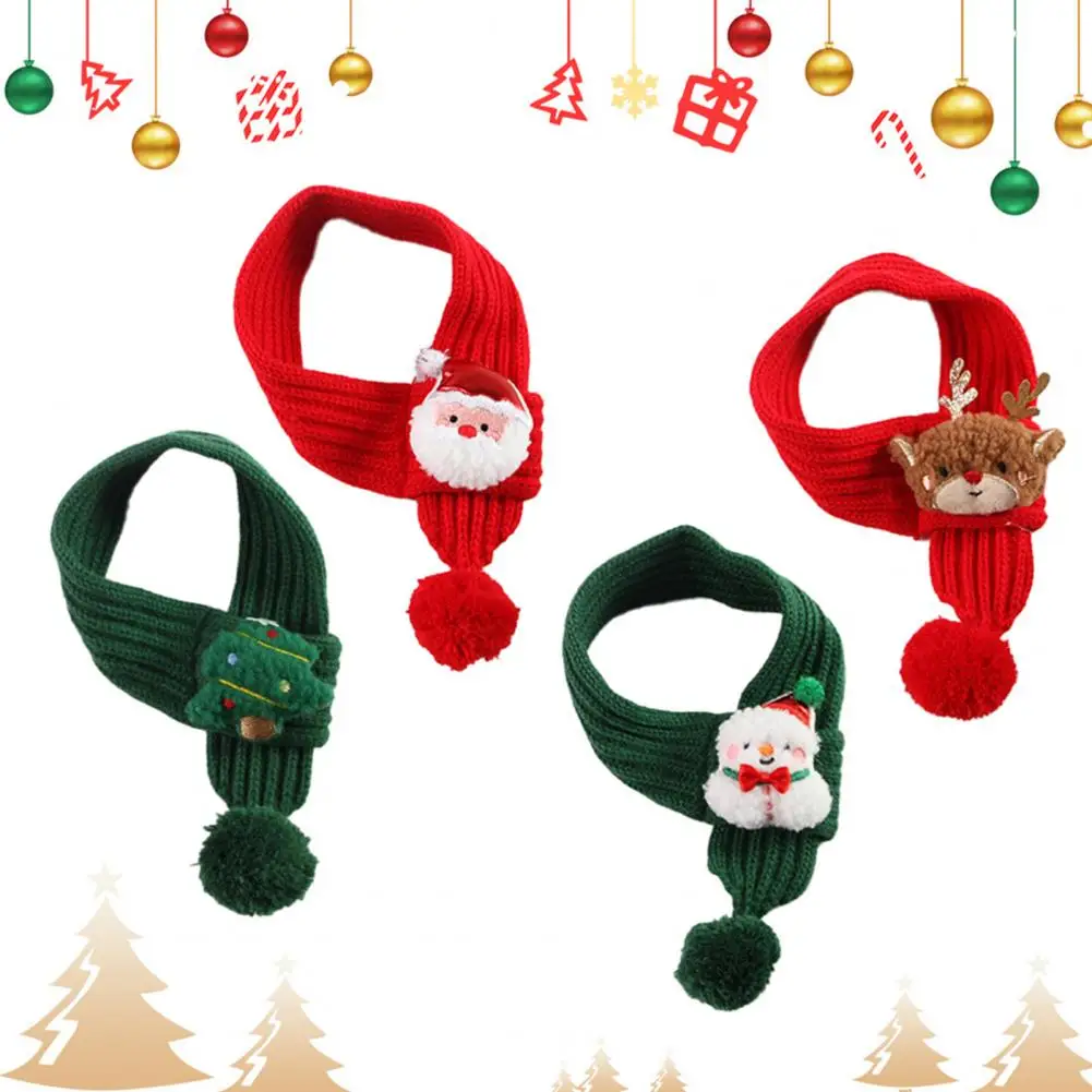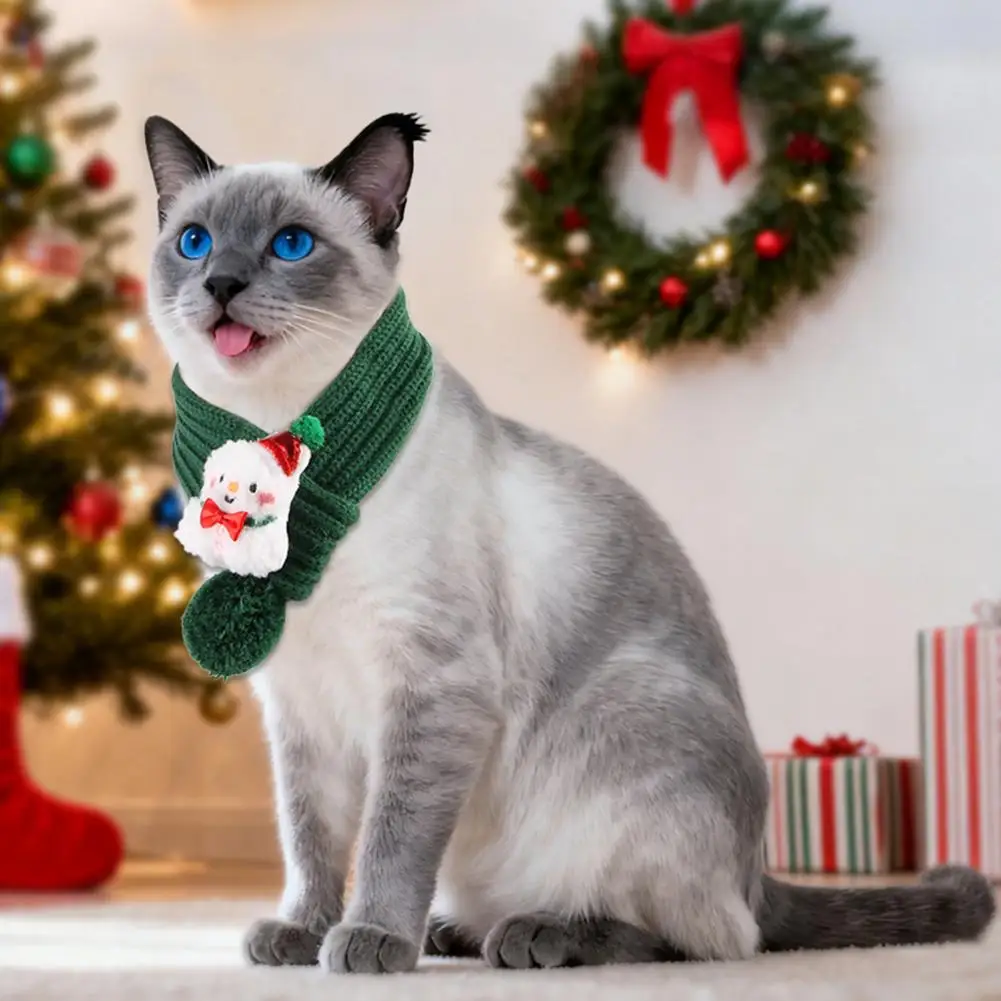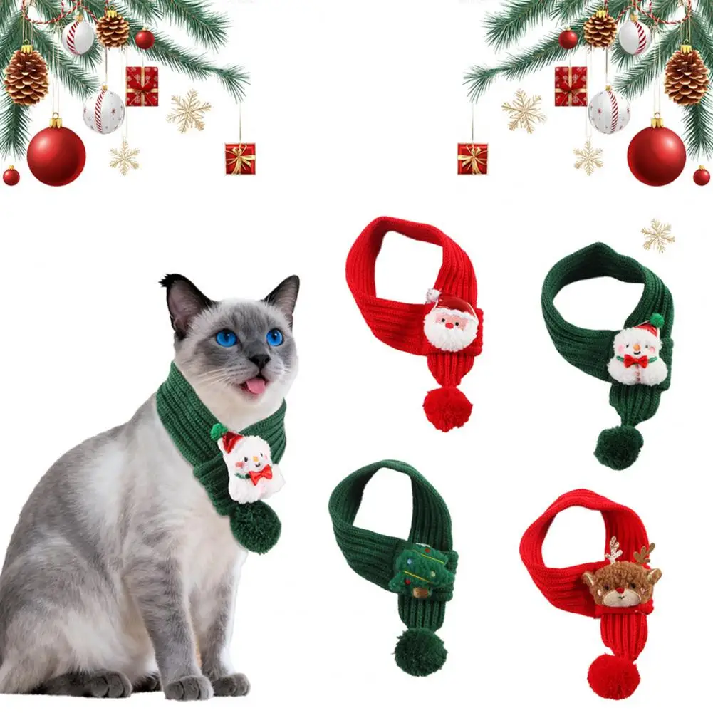 Bufanda navideña para mascotas, tamaño ajustable, muñeco de nieve, Papá Noel, decoración del árbol de Navidad, diseño festivo, bufanda tejida para gatos y mascotas, accesorio para fotos