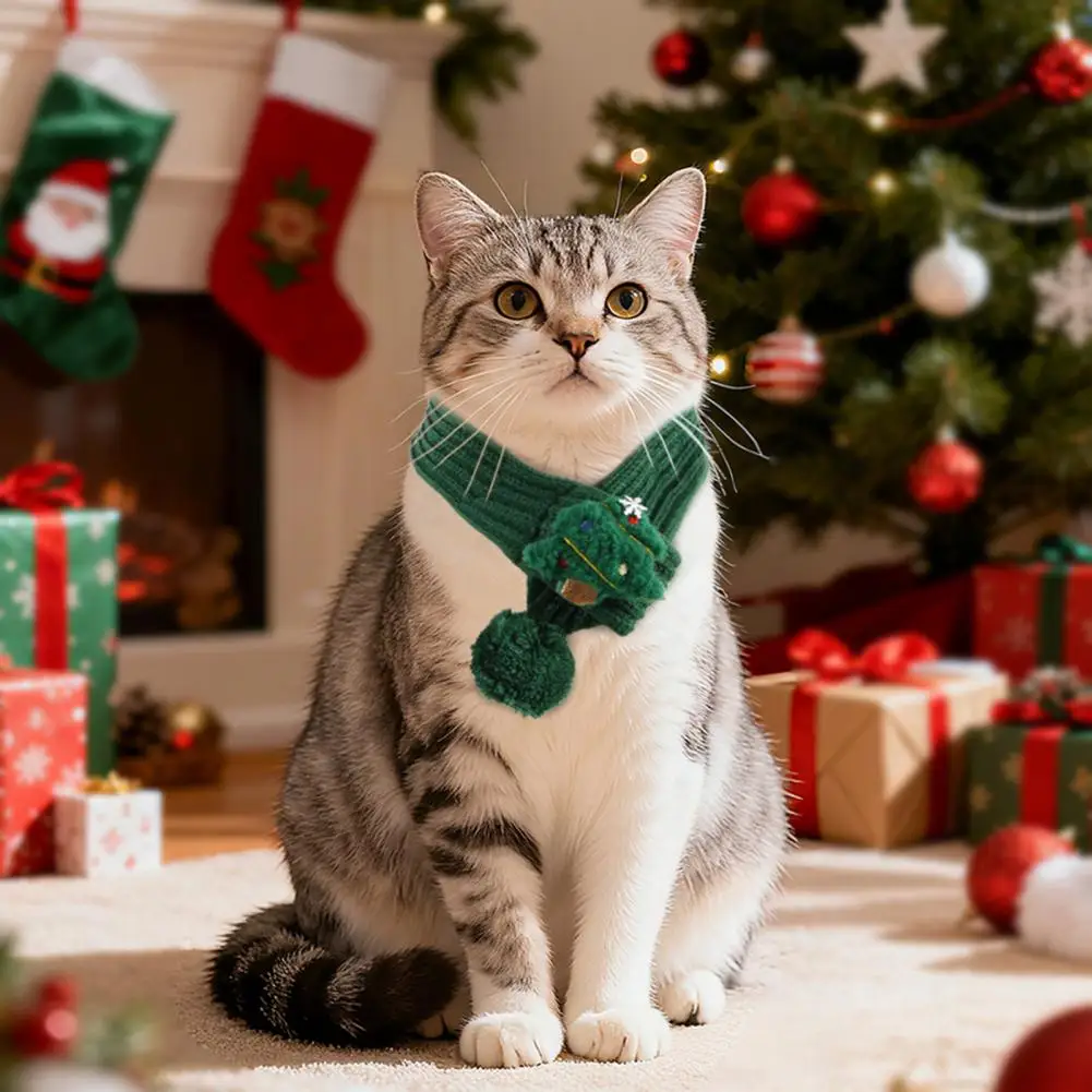 Mejora el aspecto festivo de tu mascota con esta adorable bufanda navideña para mascotas.El diseño de tamaño ajustable garantiza un ajuste perfecto para gatos y pequeñas mascotas de distintos pesos y grosores de cuello.
