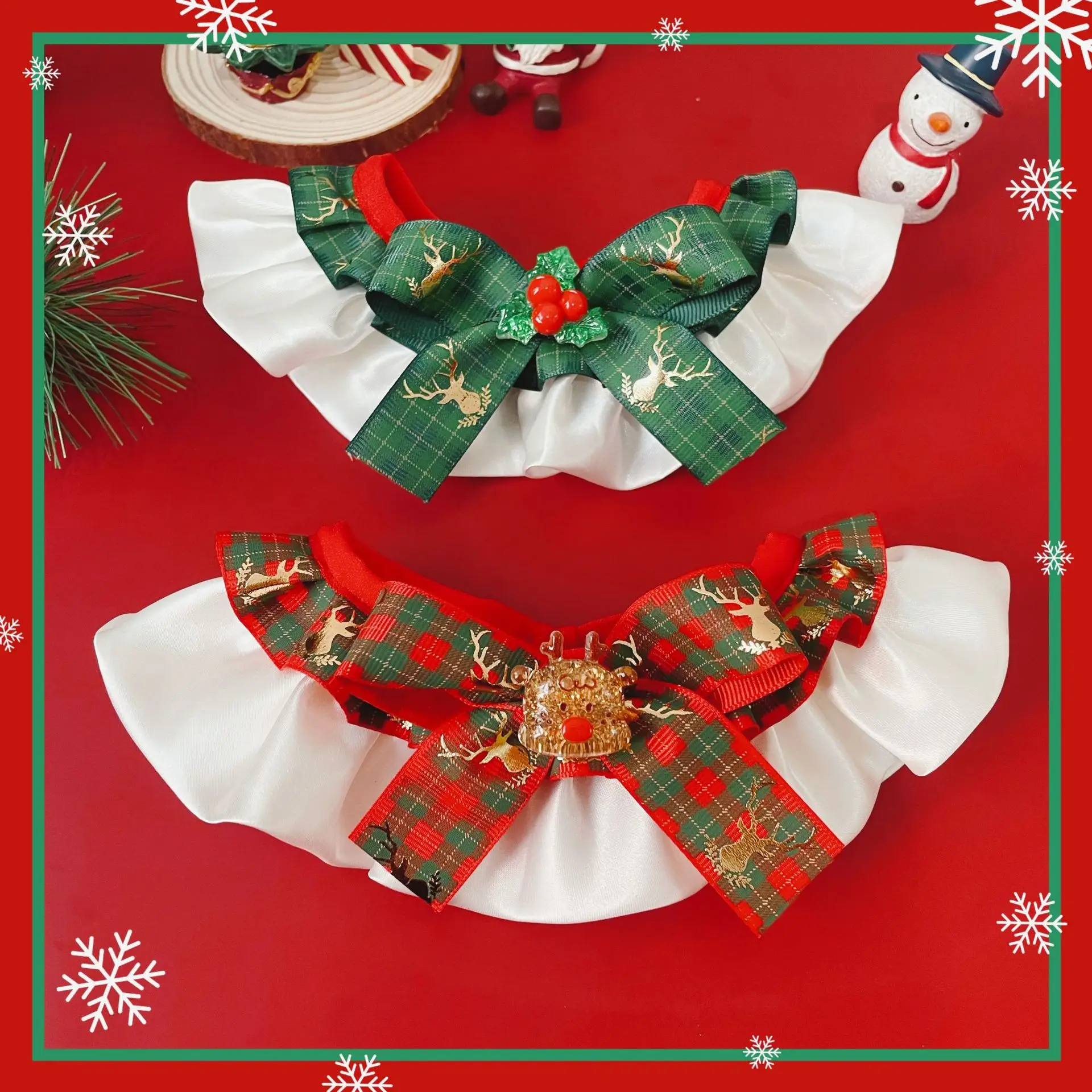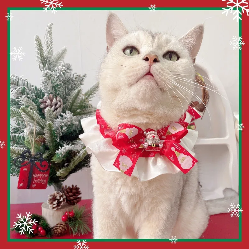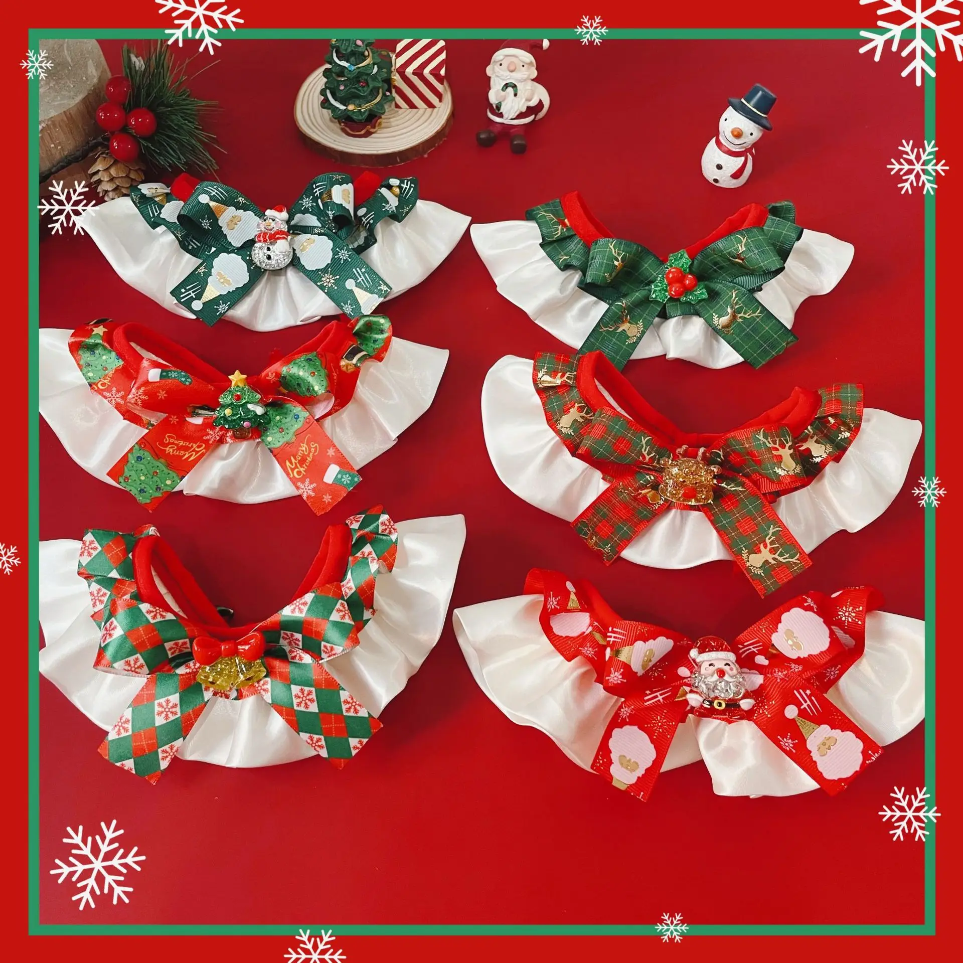 Bufanda navideña para otoño e invierno para mascotas, Collar con lazo para perro y gato, ropa con lazo de Navidad, bufanda, ropa para perros pequeños, accesorios para cachorros