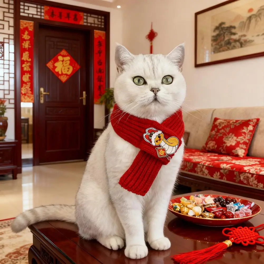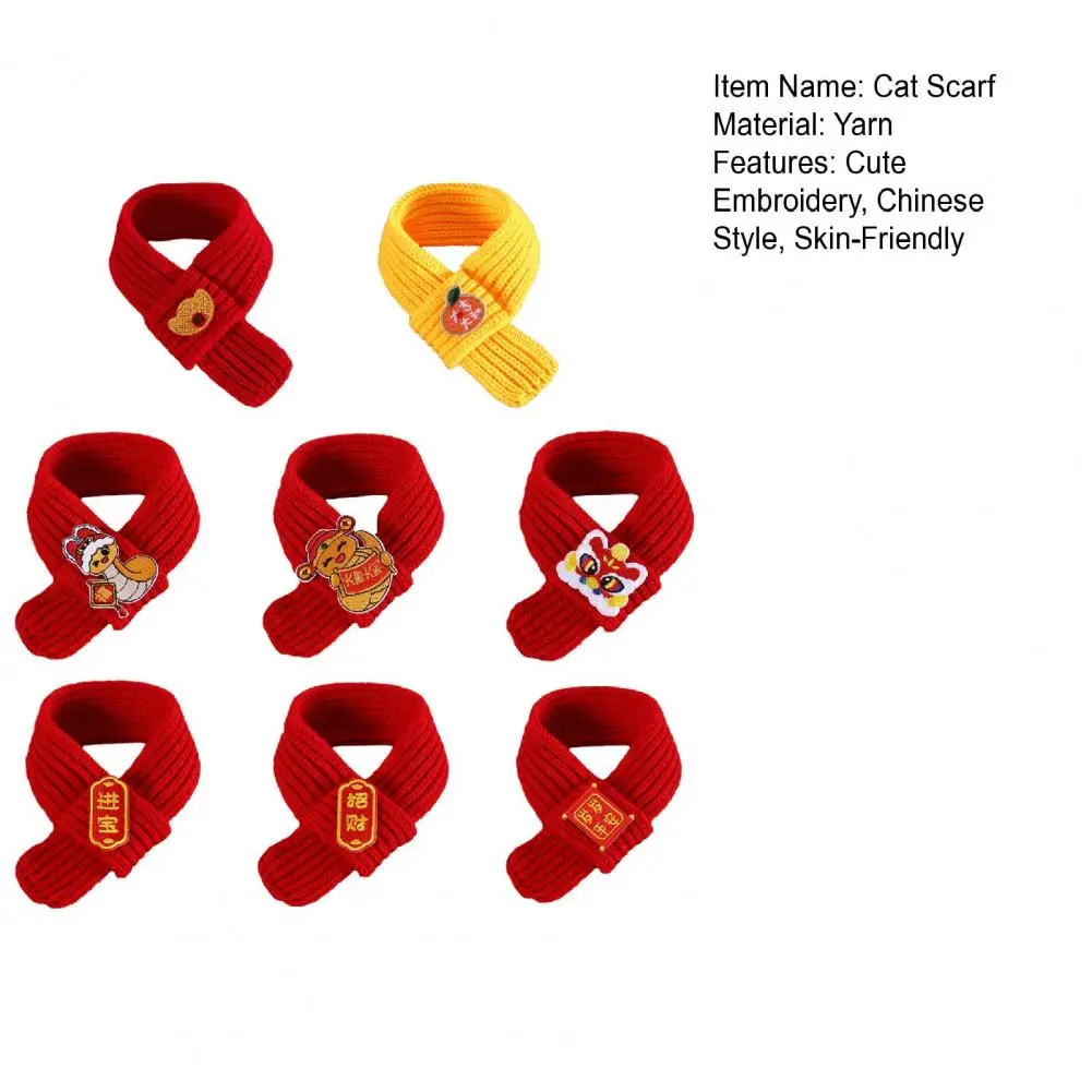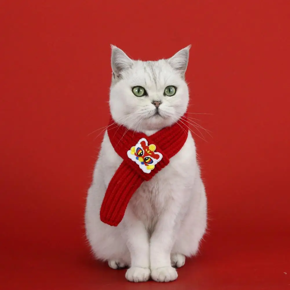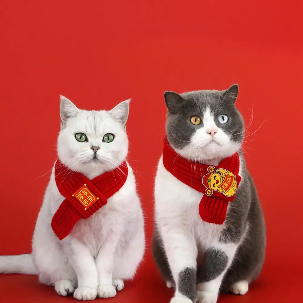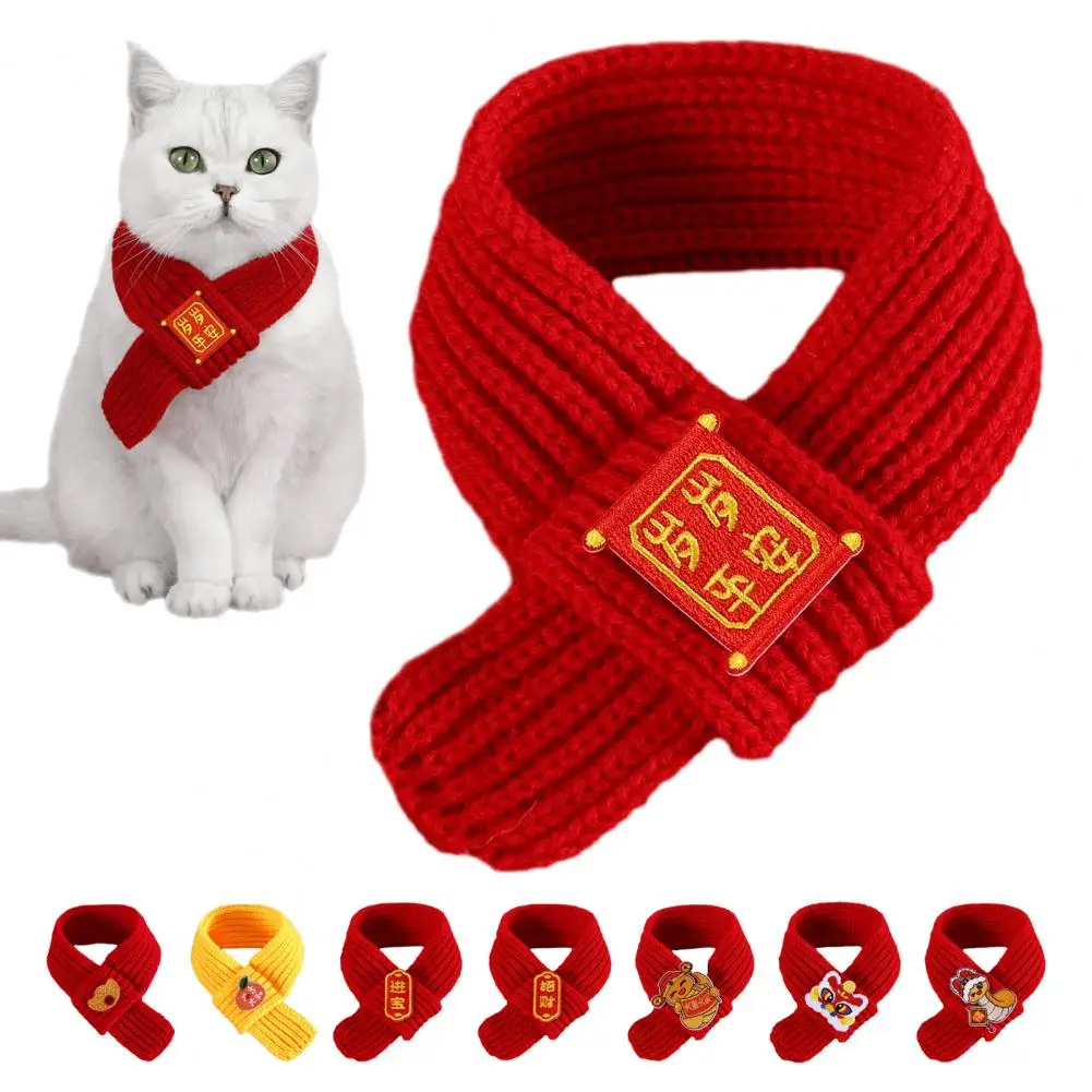 Bufanda roja de punto para gatos, bufanda para mascotas de Año Nuevo Chino, bufanda de fortuna bordada para gatos, perros pequeños, accesorio de vestir para Festival de Primavera