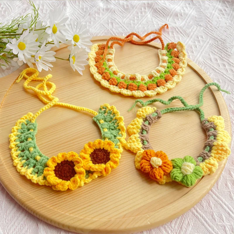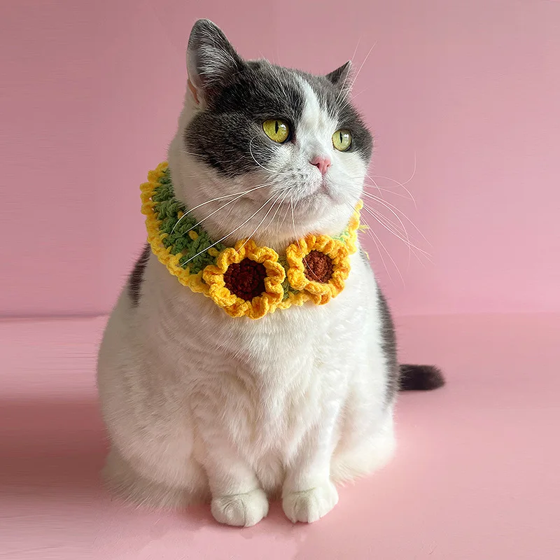 Bufanda tejida para gatos, babero verde con forma de girasol para mascotas, bonito babero para cachorros, collar, decoración, accesorios para perros pequeños y cachorros