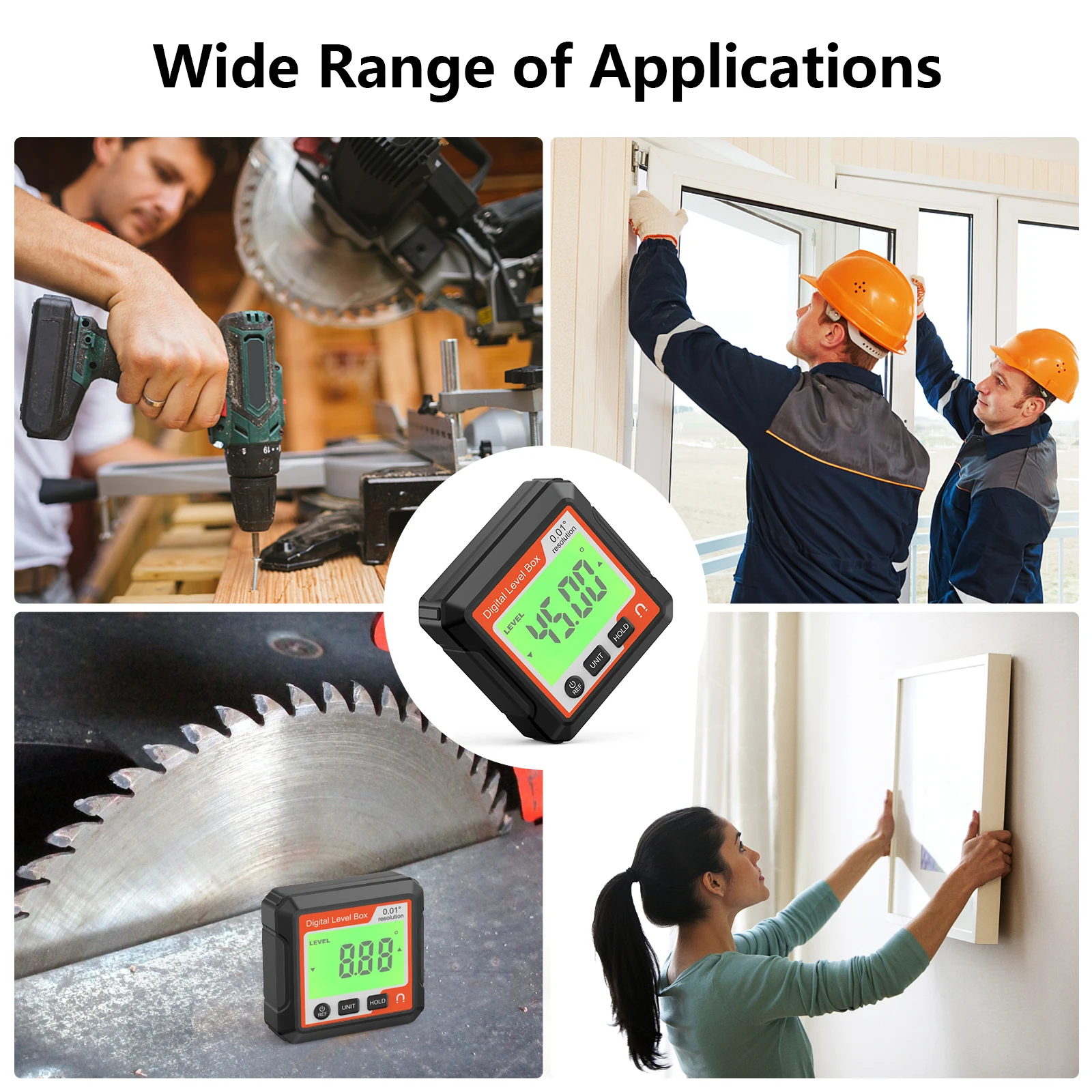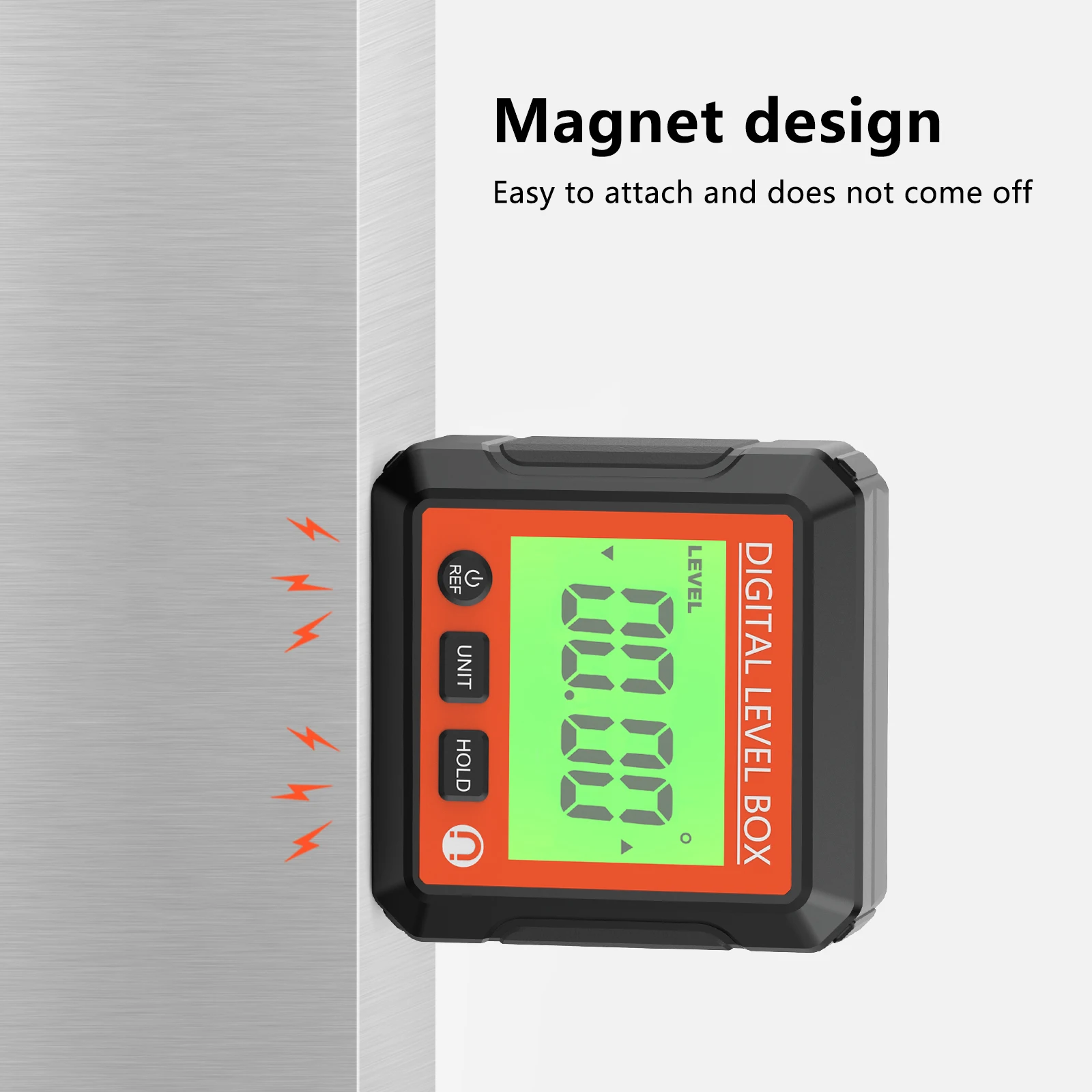 Buscador de ángulos de nivel Digital magnético Medidor de nivel de retroiluminación LCD Inclinómetro 4*90° Caja de nivel de transportador magnético para carpintería