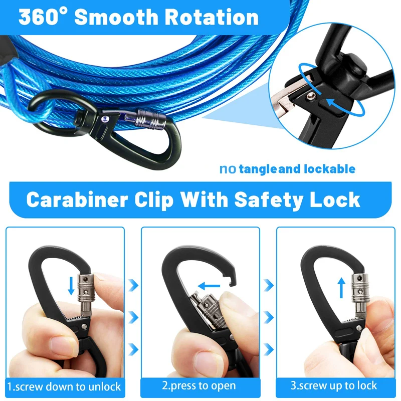 Tubo PVC Protector: Envoltura suave y segura. Clip de Bloqueo: Evita escapes accidentales. Amplia Aplicación: Ideal para múltiples actividades.