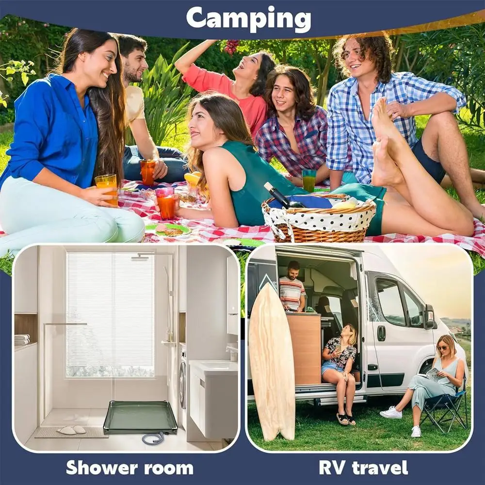 4. Ahorro de espacio y conveniente: diseñada con una estructura plegable compacta, esta base de ducha garantiza un montaje rápido y una portabilidad sin esfuerzo, lo que la convierte en una opción práctica para guardar en mochilas o vehículos recreativos mientras viaja o acampa.