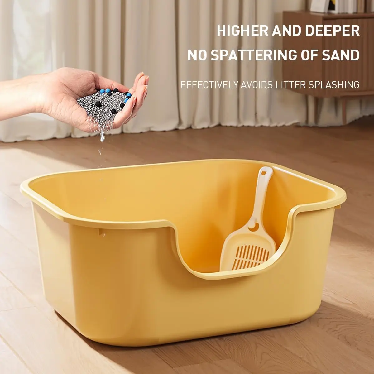 Cacerola grande semicerrada para gatos, caja de arena para gatos Jumbo a prueba de salpicaduras con cuchara, caja de arena de gran tamaño a prueba de salpicaduras