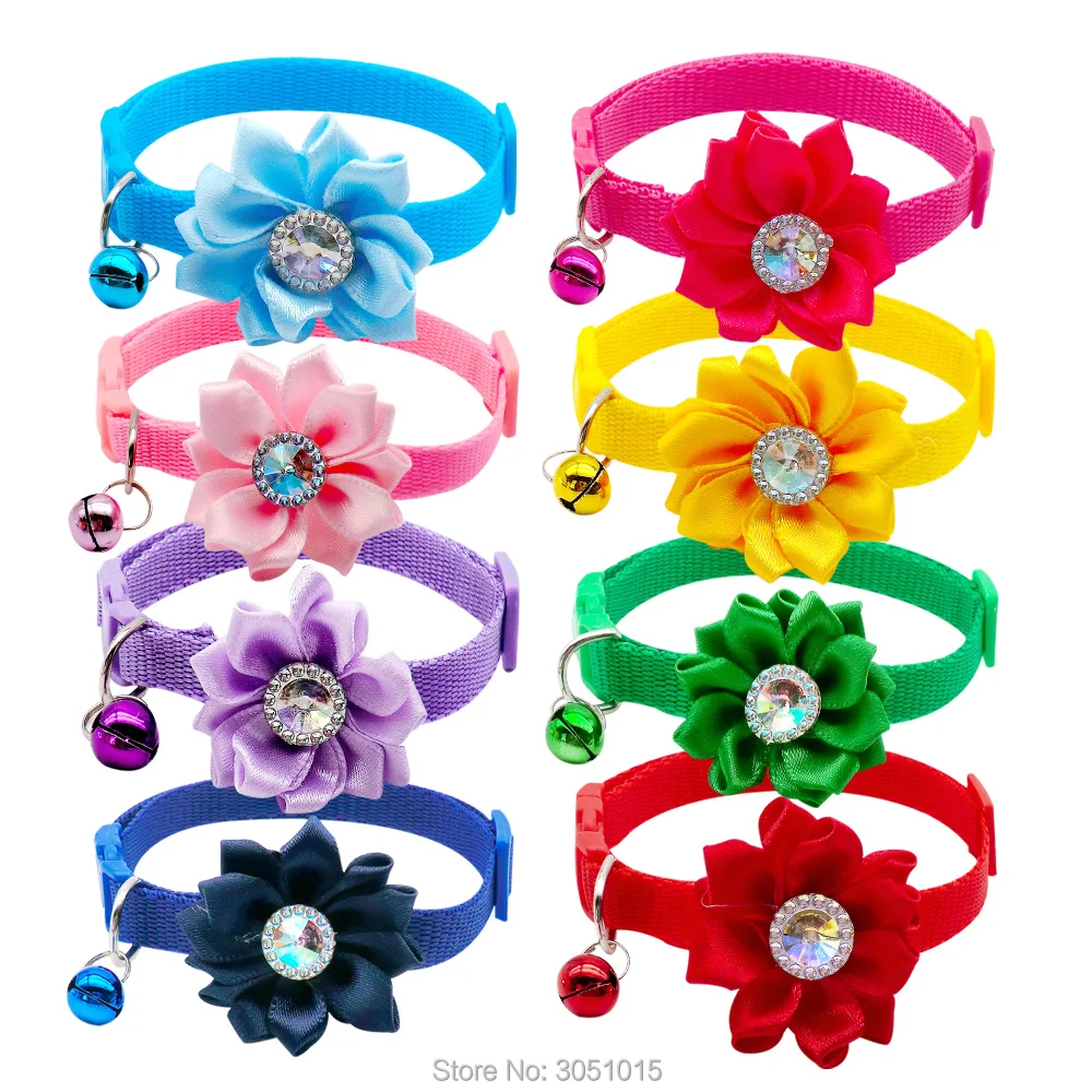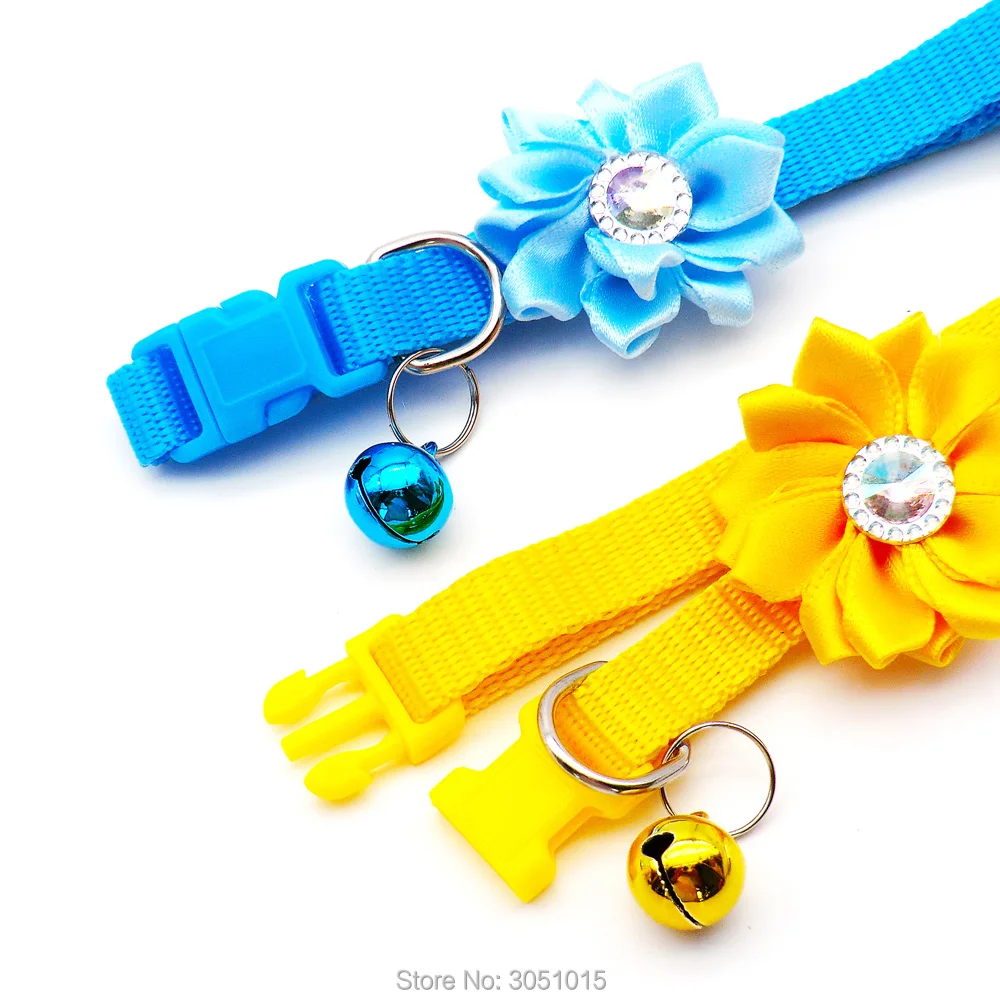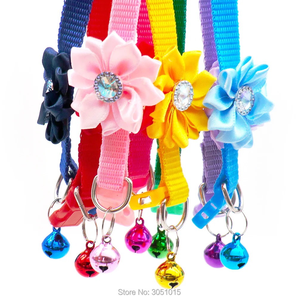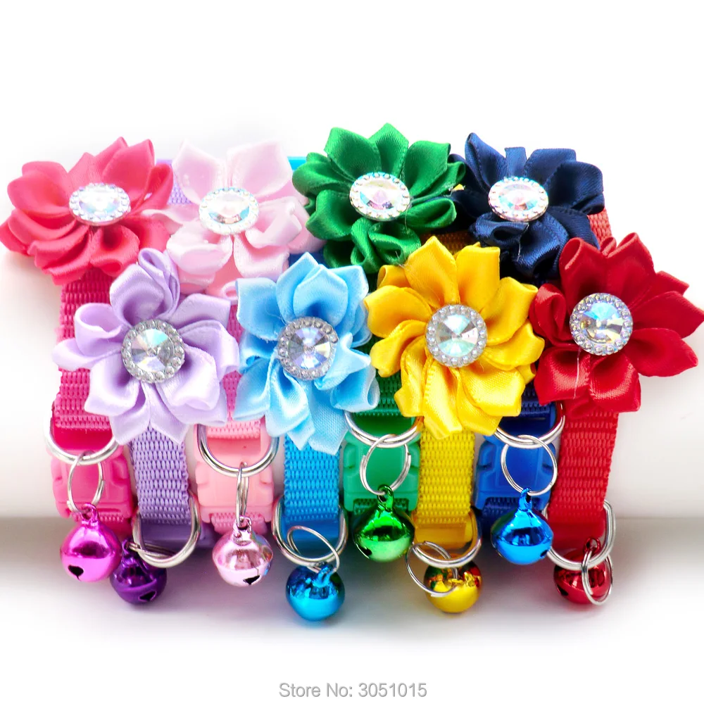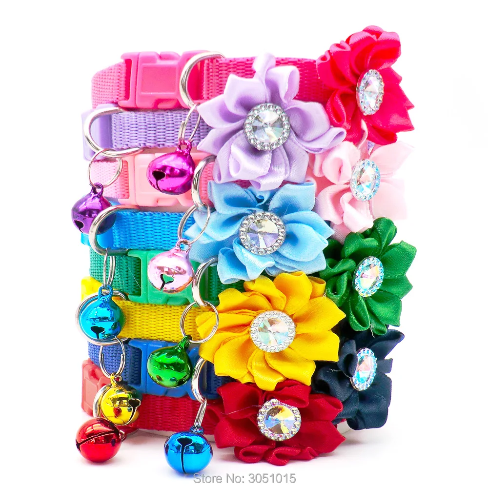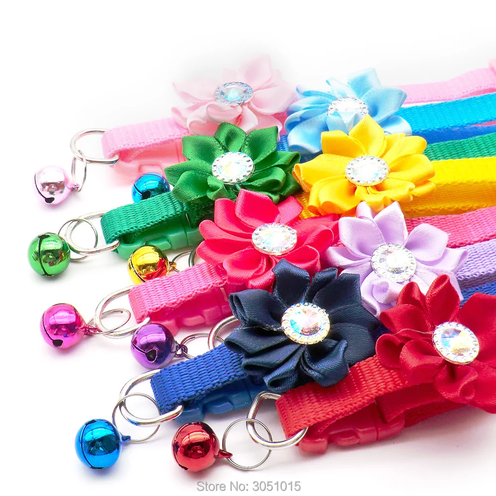 Venta al por mayor, 24 Uds., accesorios para perros y gatos, decoración de flores y diamantes, Collar con lazo para cachorros, etiqueta de identificación, collar de diseño personalizado, suministros de dijes de cadena