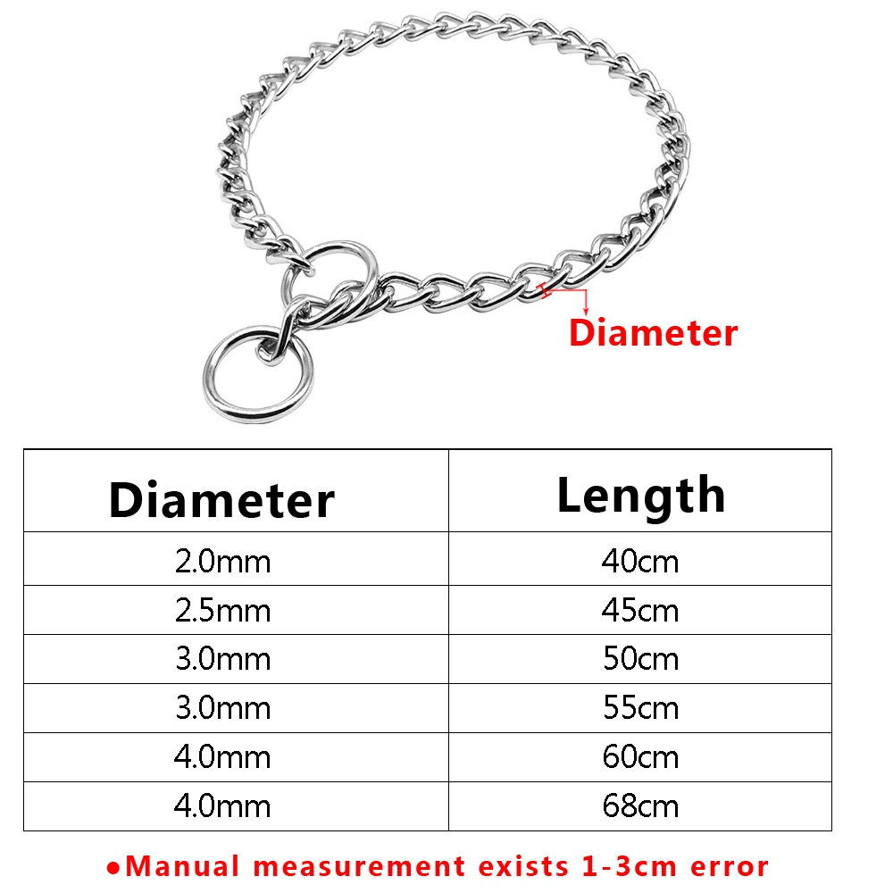 - Cadenas deslizantes para perros Collar de estrangulación para mascotas Collares de cadena de metal para perros pequeños, medianos y grandes Diámetro de entrenamiento