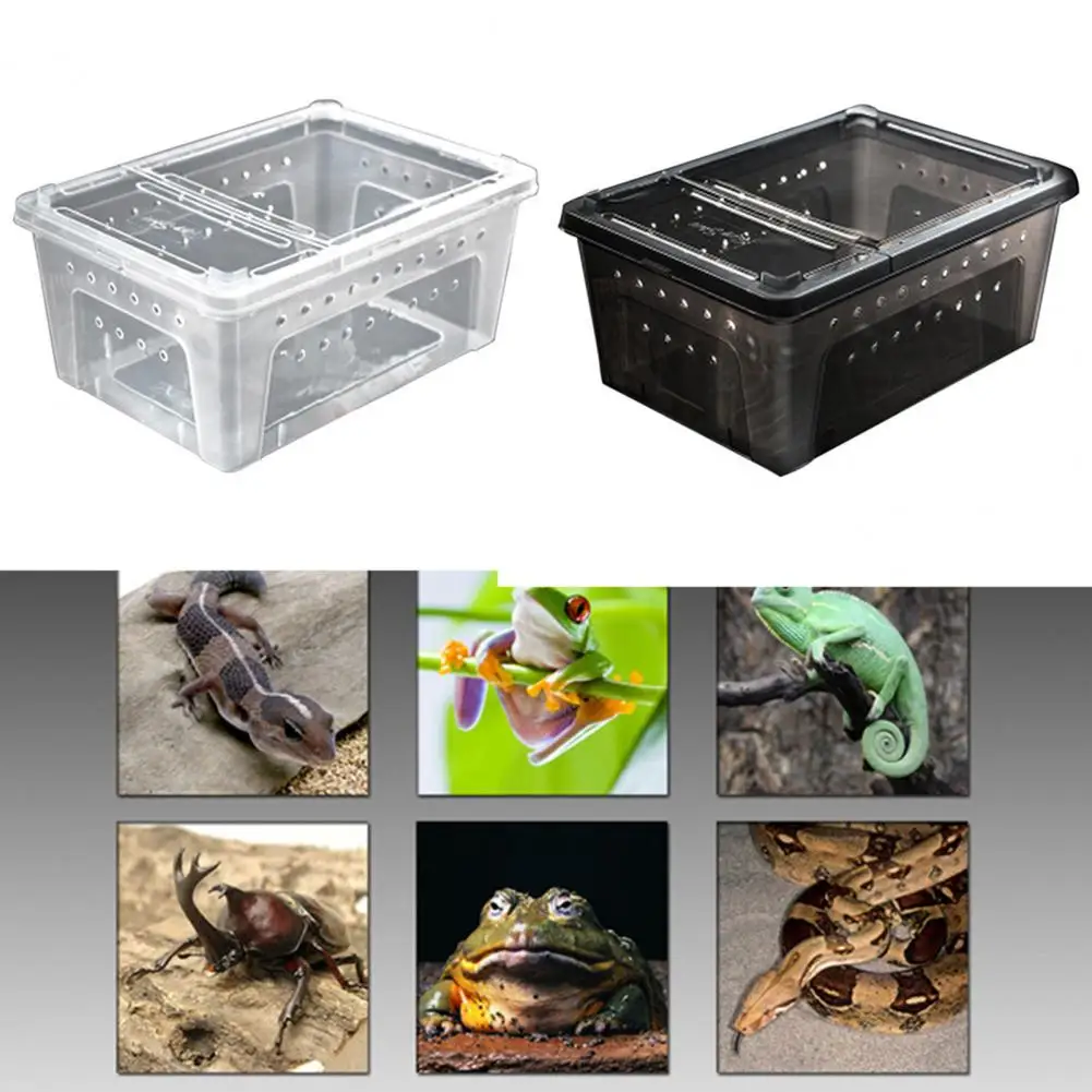 Caja de alimentación de plástico con orificios de ventilación, contenedor de eclosión de alimentación de Color sólido fácil de limpiar, caja de alimentación de reptiles, Rana y lagarto para mascotas