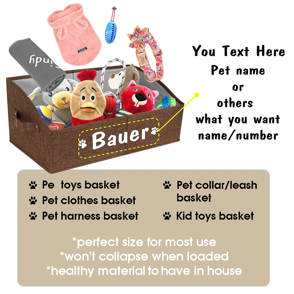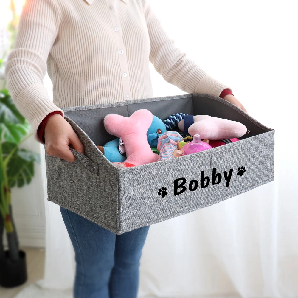 Caja de almacenamiento de juguetes para perros personalizada, cesta de almacenamiento plegable para perros y gatos con impresión gratuita del nombre, organizador de mascotas, cestas para perros y gatos, suministros para mascotas