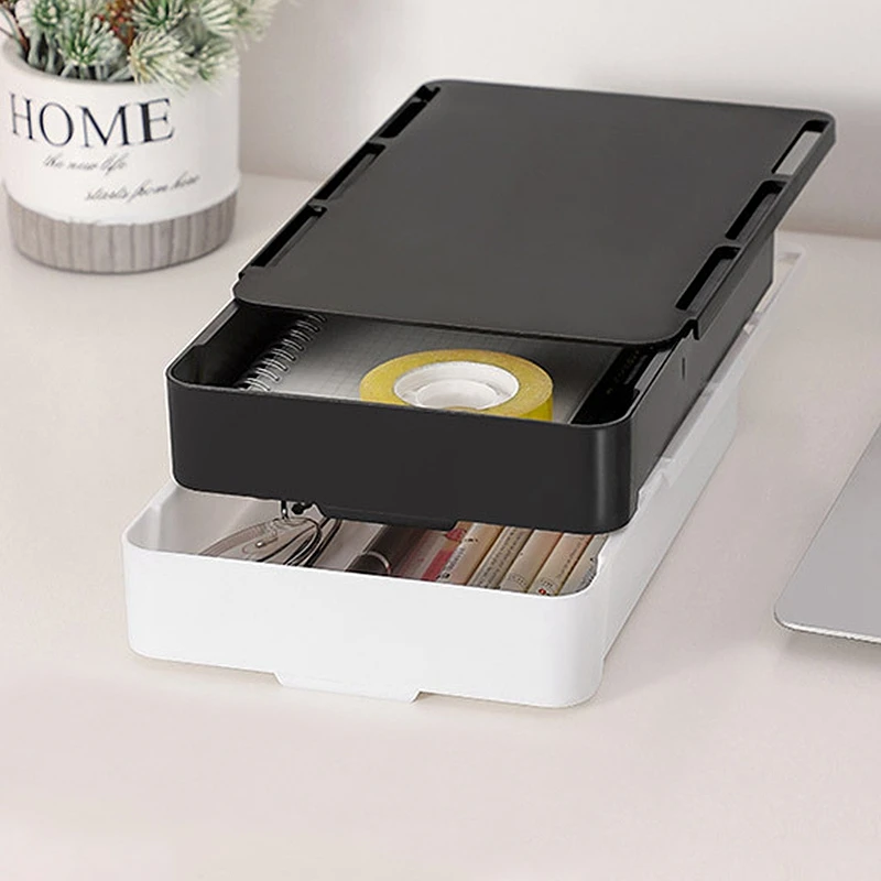 1.Caja de almacenamiento oculta, diseño colgante, no ocupa espacio, es fácil de almacenar y el escritorio no está desordenado