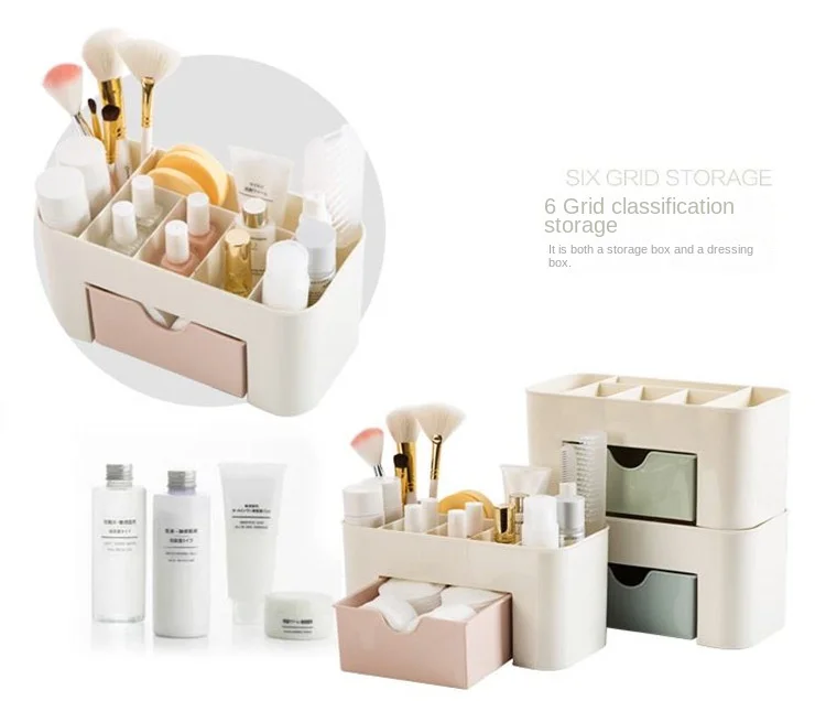 Caja de almacenamiento organizadora de maquillaje con cajón, hisopo de algodón, estuche de almacenamiento, organizador de lápiz labial, soporte para brochas, plástico acrílico para maquillaje