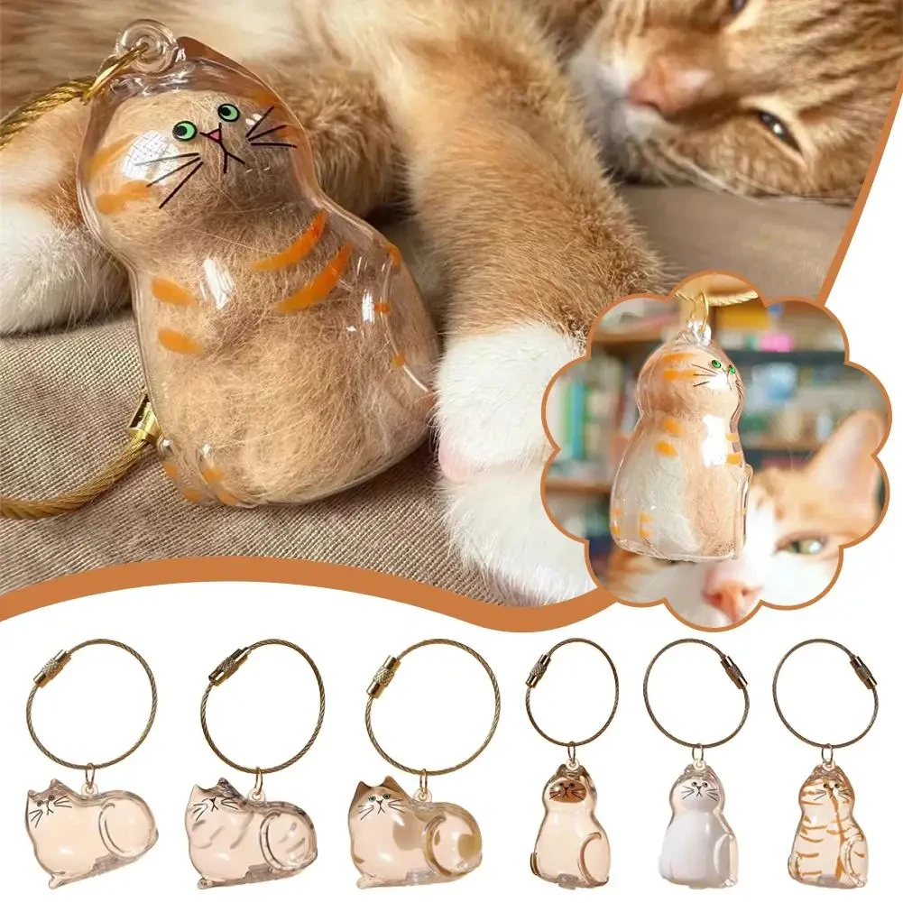 Botella de almacenamiento de pelo de gato: 6 estilos de gato para satisfacer diferentes necesidades.Tamaño del gato: aproximadamente 4,5 centímetros/1,8 pulgadas, hecho de material plástico, con un llavero de metal