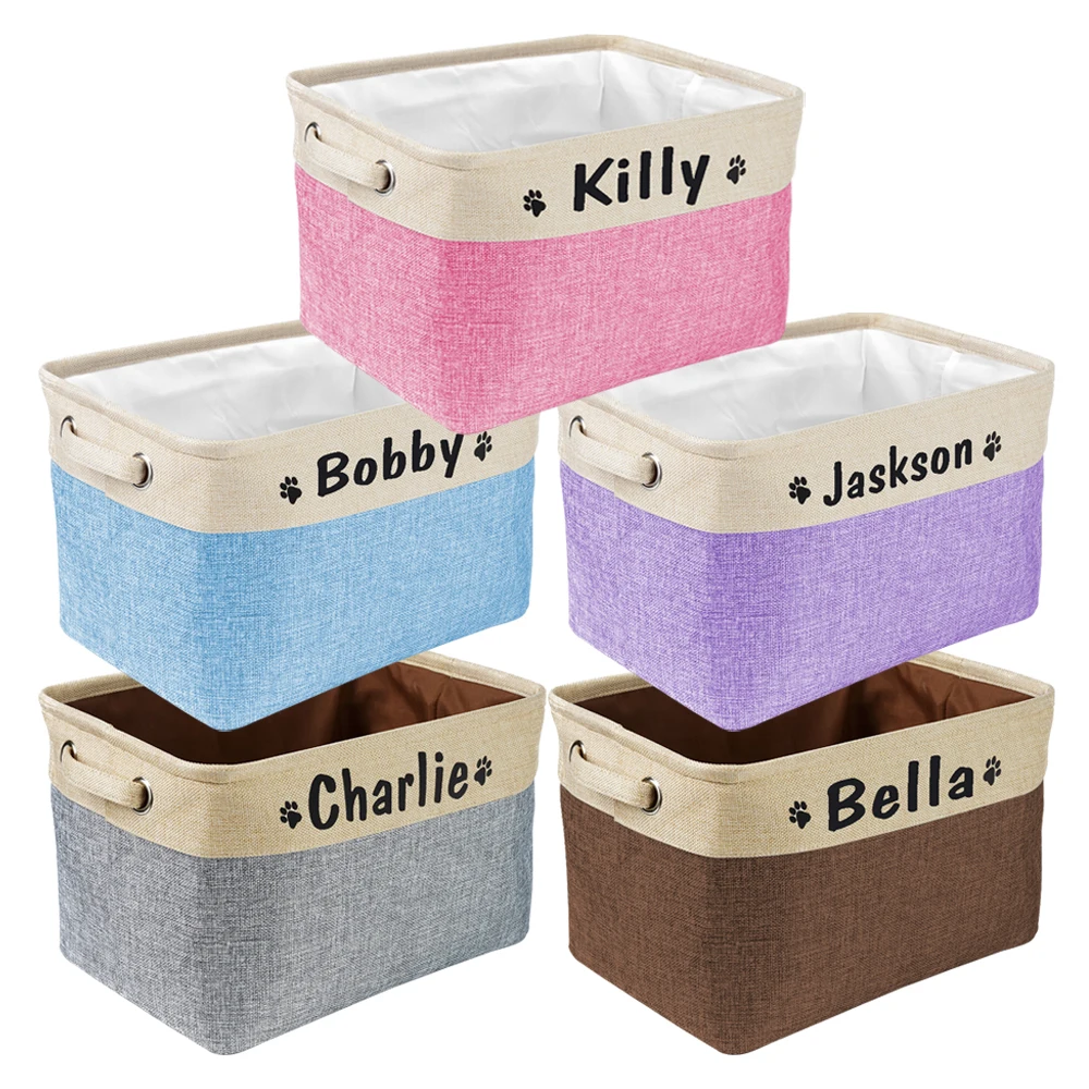 Personalized Pet Storage Box Free Custom Dog Storage Baskets For Dog Toys Clothes No Smell Free Print Dogs Name With Cute Paw