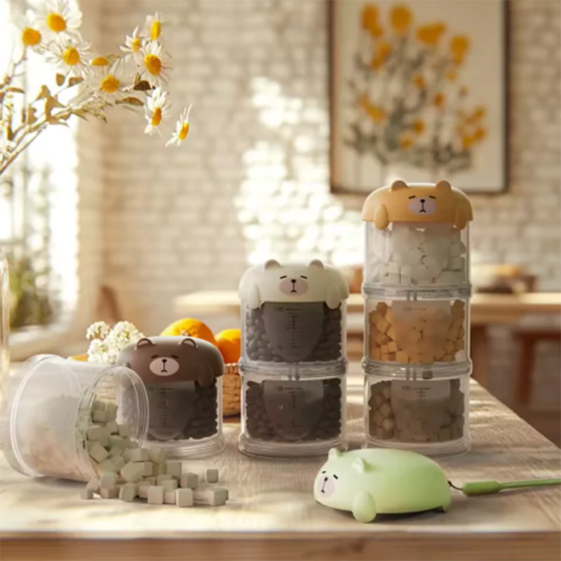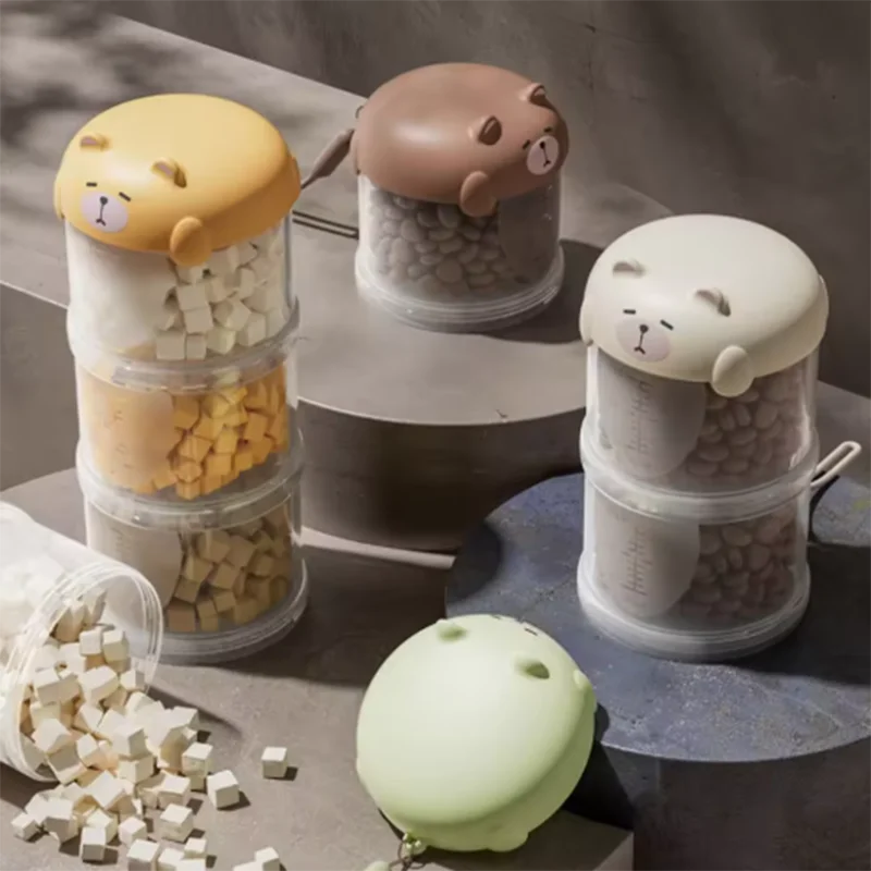 Caja de almacenamiento portátil de plástico multicapa a prueba de humedad para aperitivos para perros, caja de embalaje bonita extraíble de tres capas para alimentos para mascotas sellada