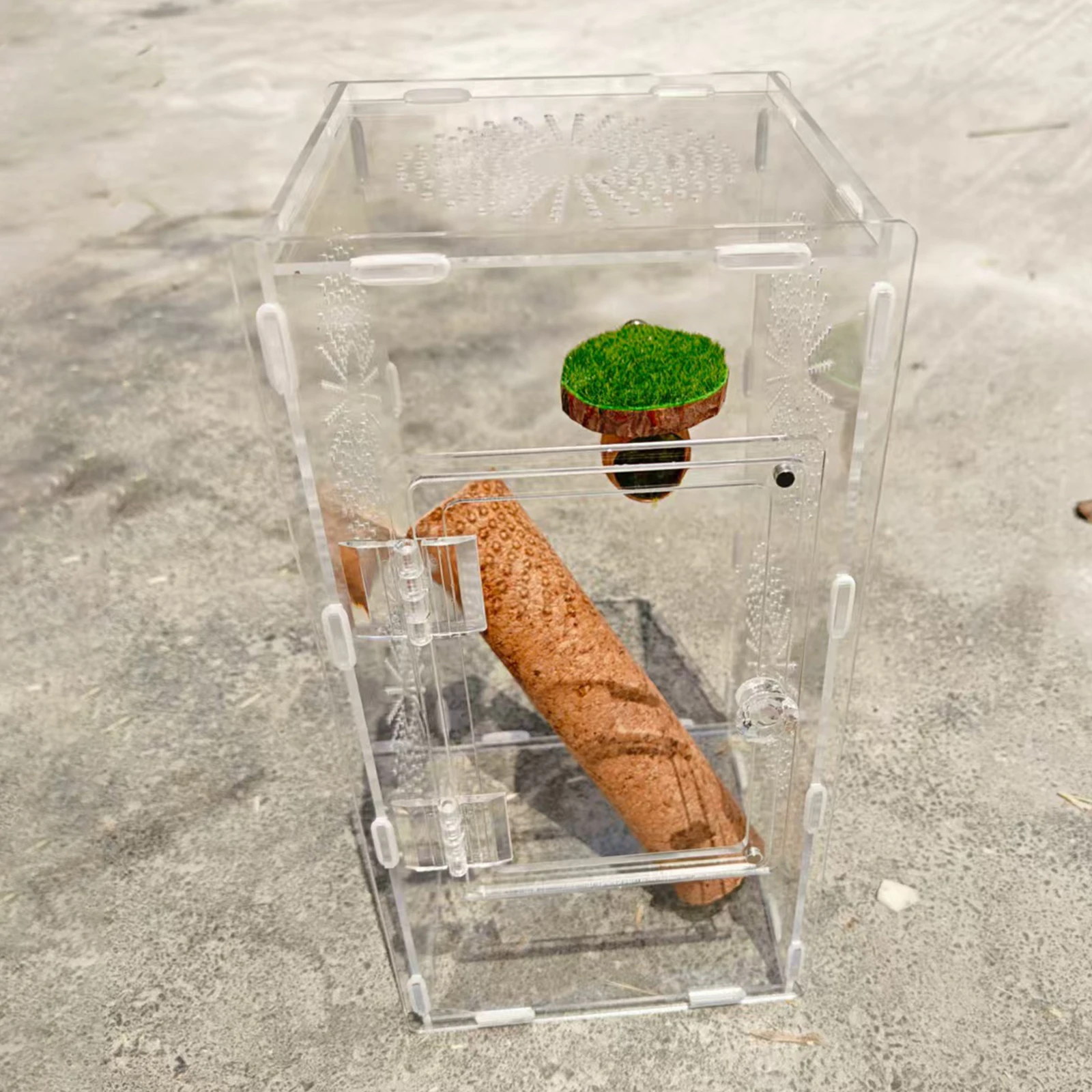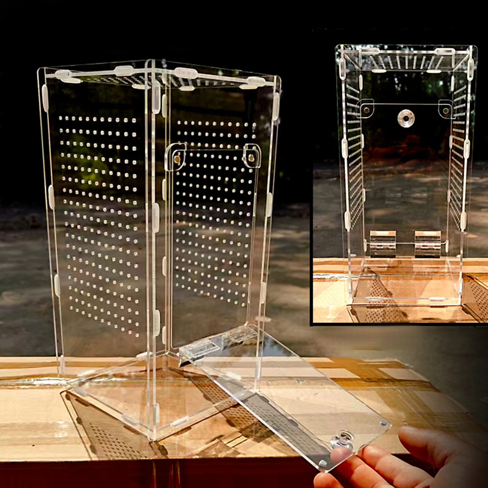 Material: Mantises Terrarium está fabricado con acrílico de primera calidad, esta jaula envolvente ofrece una visibilidad excepcional para una visualización óptima de sus mascotas.