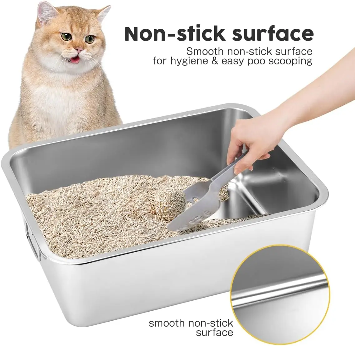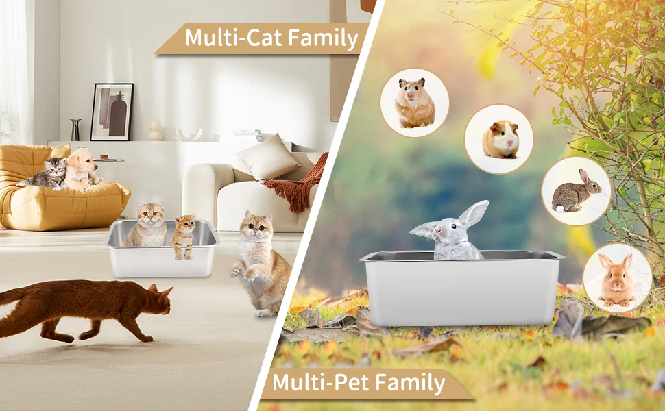 Alta robustez---- Si tu amigo peludo puede golpear la caja de arena, nuestra caja de arena estable y duradera de acero inoxidable es la elección perfecta.