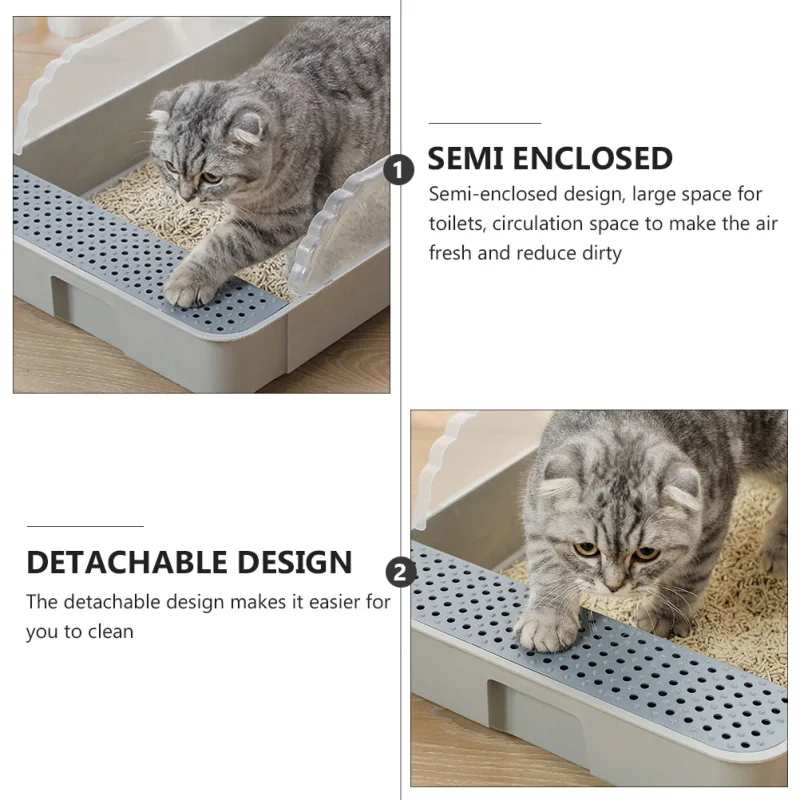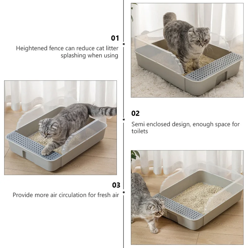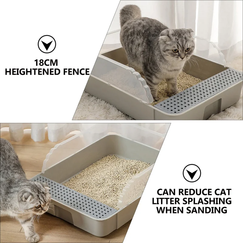 - To prevent cat litter from being spilled everywhere, the fence is raised.