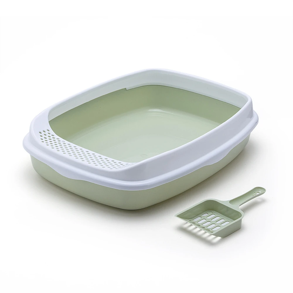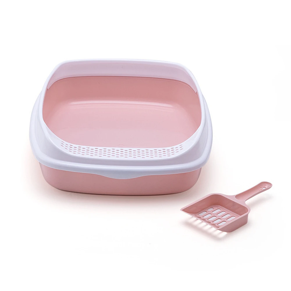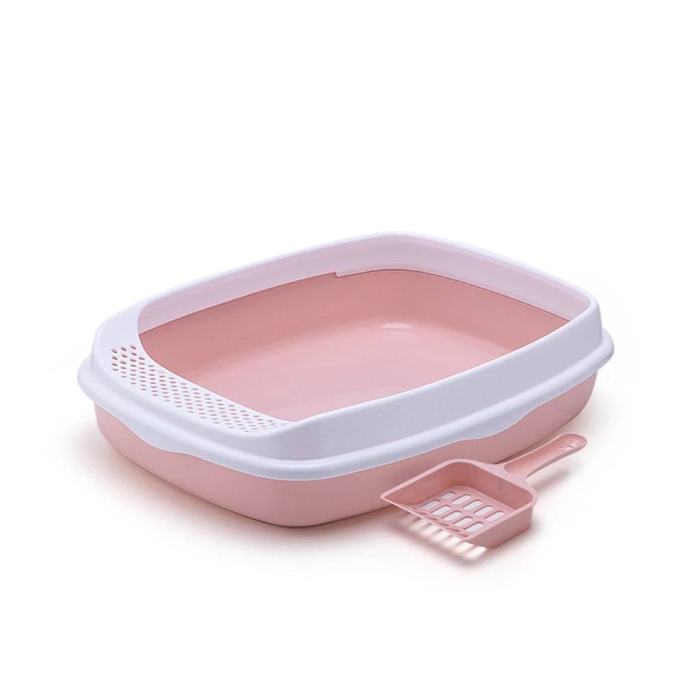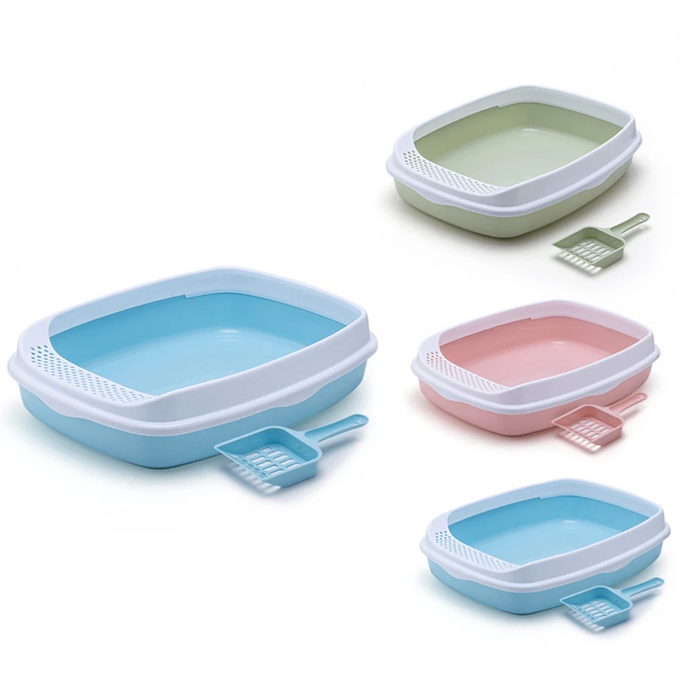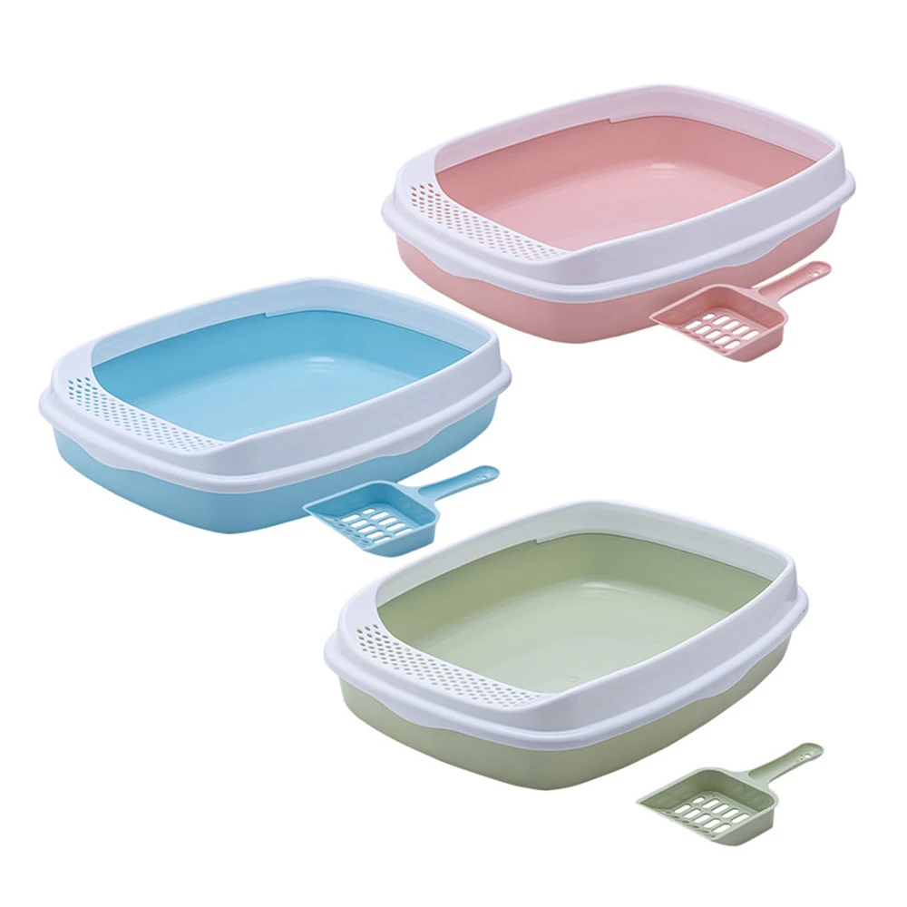 Caja de arena antisalpicaduras para gatos, orinal de plástico con cuchara, para entrenamiento de excrementos de perros pequeños, inodoros para mascotas