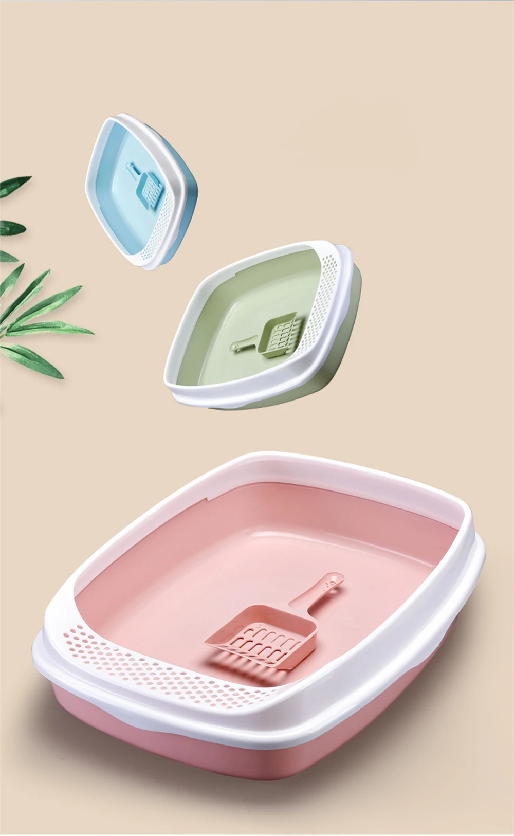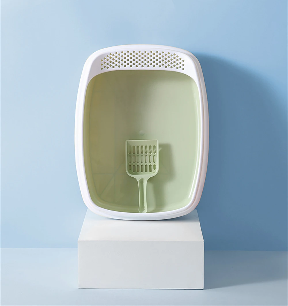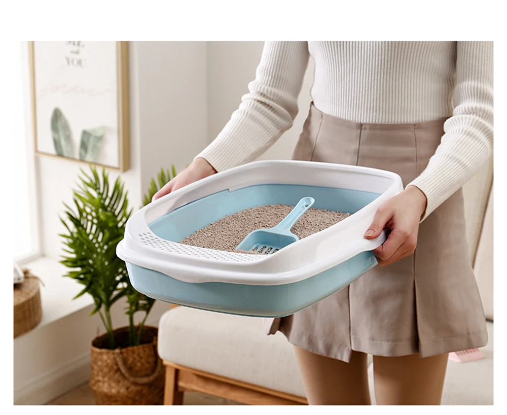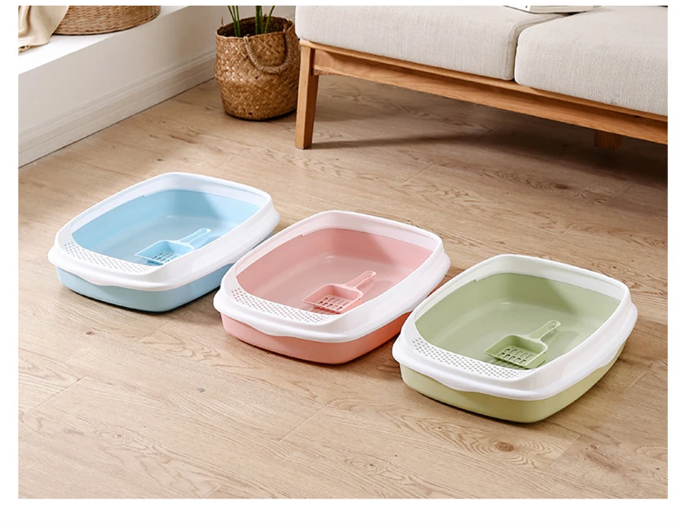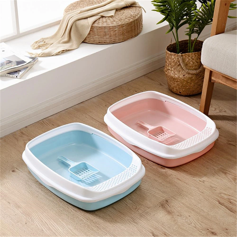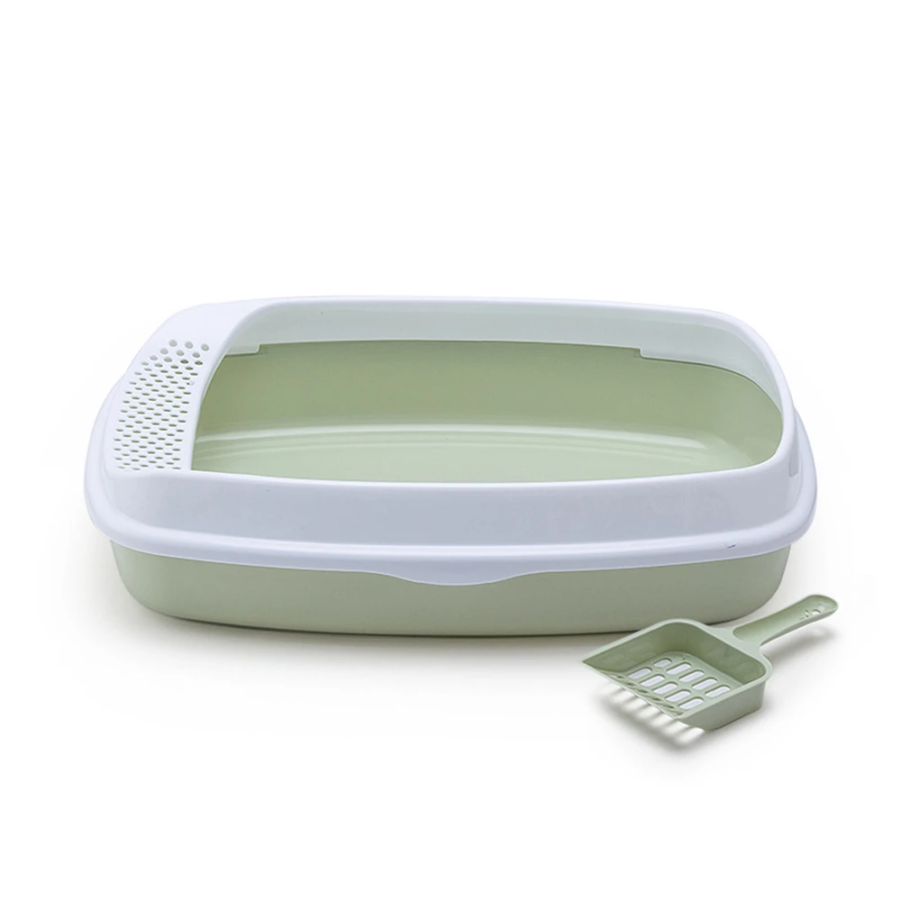 Caja de arena antisalpicaduras para gatos, orinal de plástico con cuchara, para entrenamiento de excrementos de perros pequeños, inodoros para mascotas