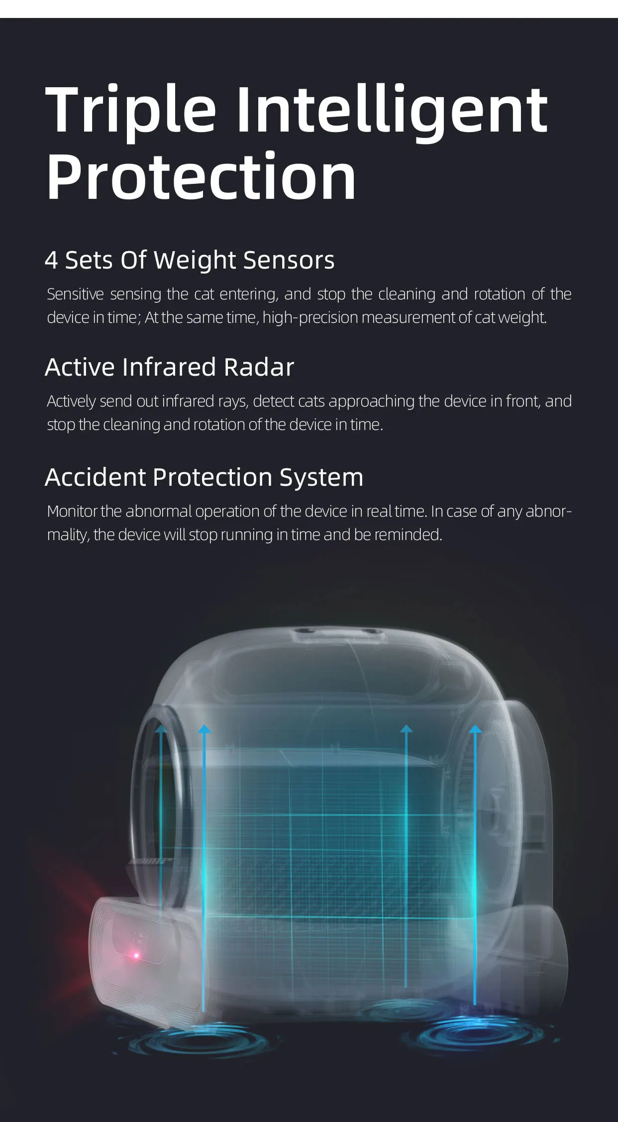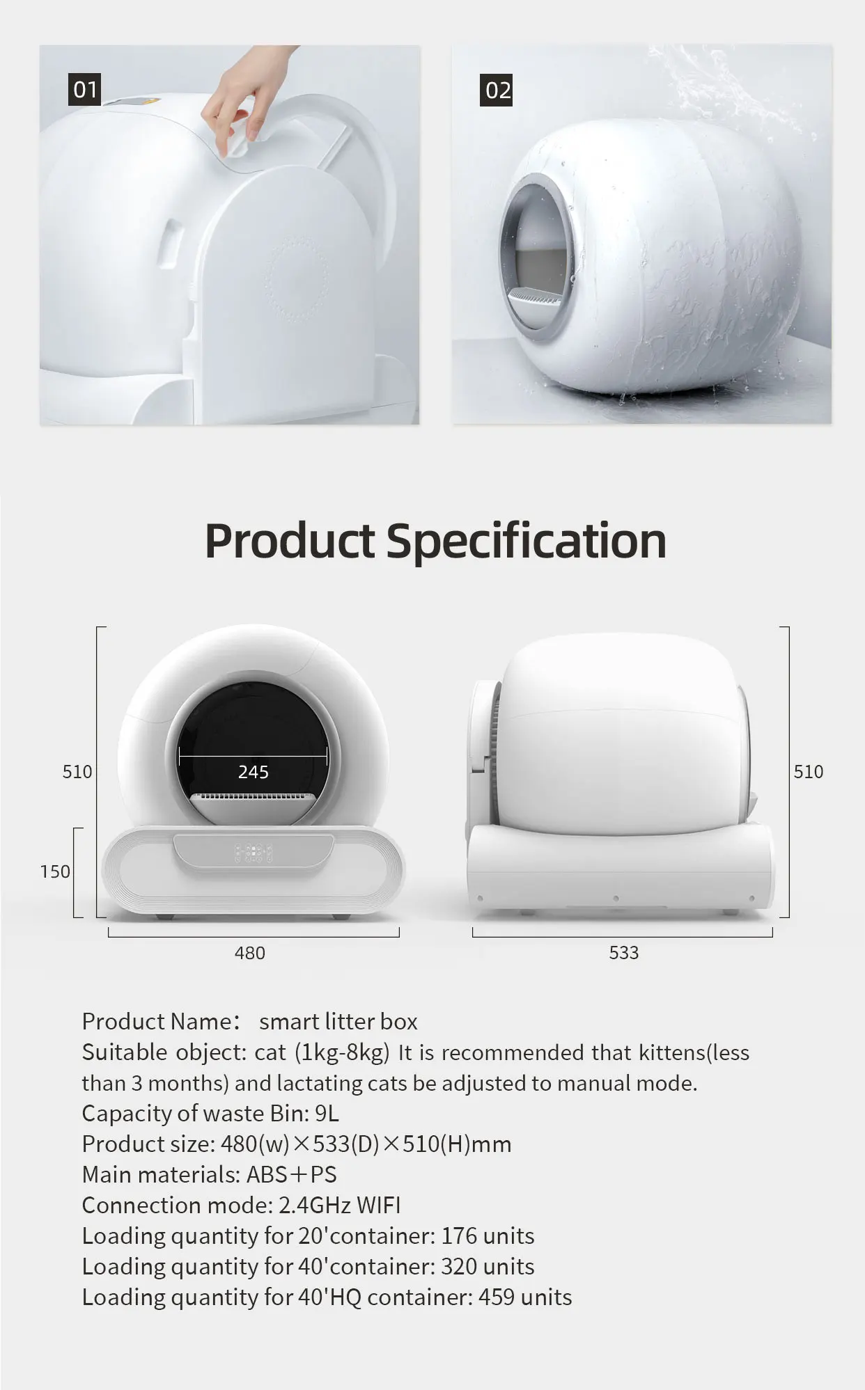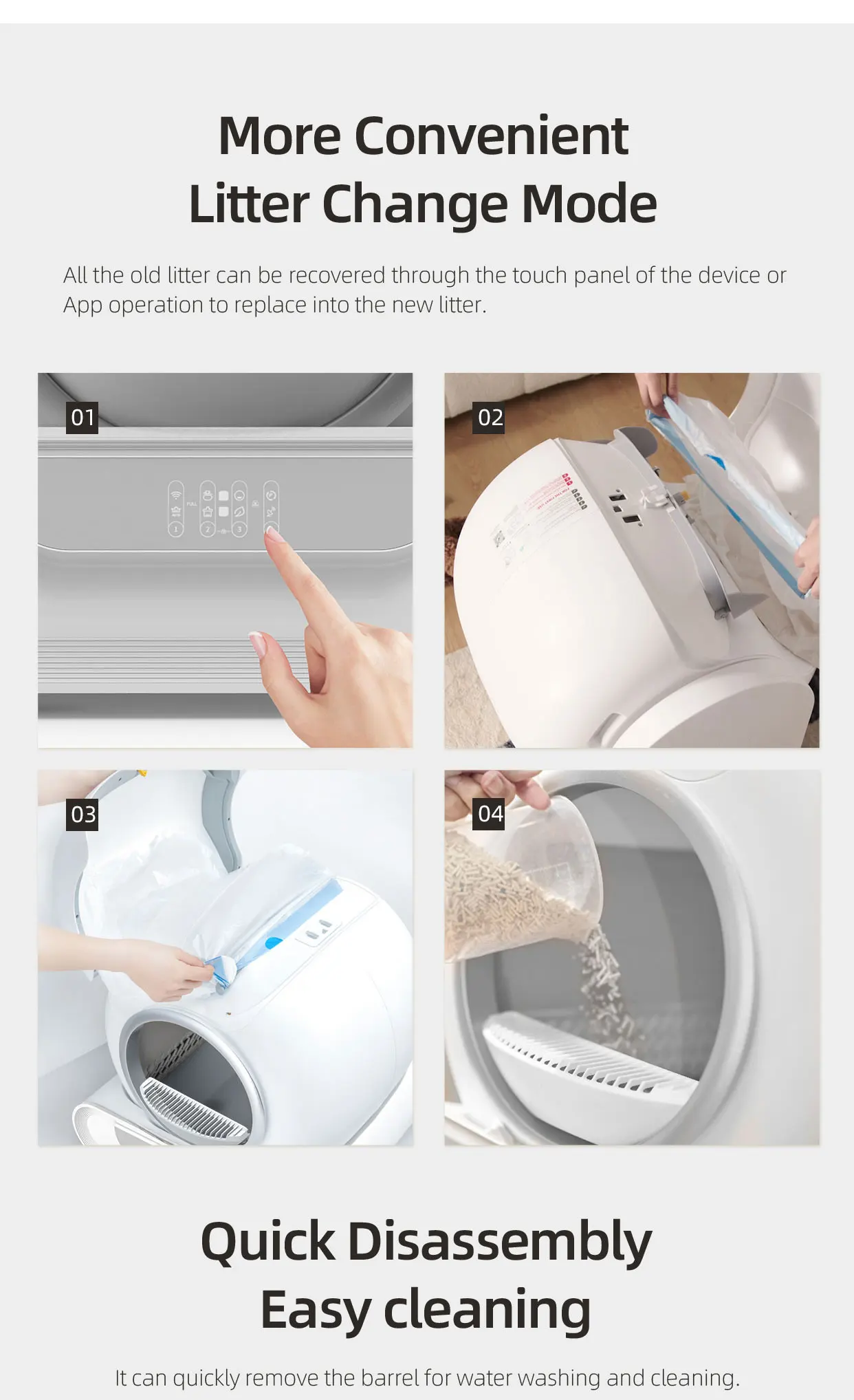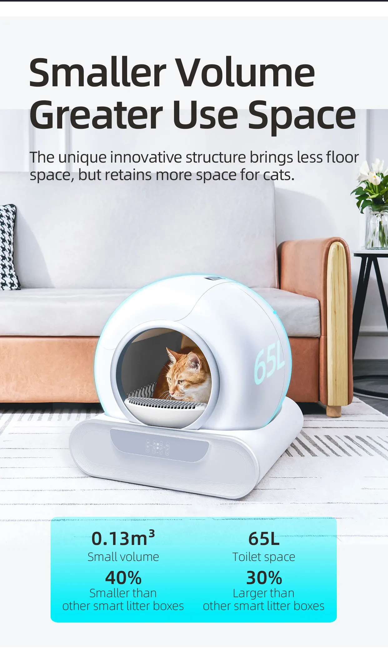 Caja de arena automática para gatos de 65L, autolimpiante, totalmente cerrada, bandeja de inodoro inteligente para mascotas, Panel de aleación para múltiples gatos