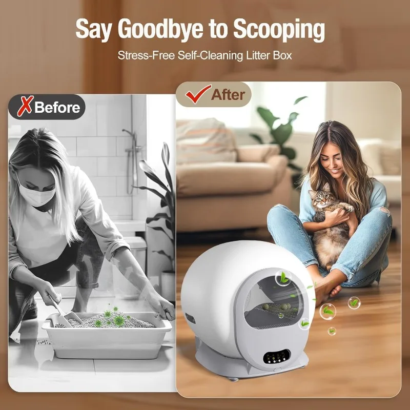 [Control de olores y funcionamiento silencioso] Equipada con un sistema de eliminación de olores de vanguardia, esta caja de arena para gatos autolimpiante neutraliza los olores desagradables y mantiene su hogar fresco y acogedor.Disfrute de un espacio limpio y sin olores, sin necesidad de un mantenimiento constante.Funciona por debajo de 40 dB, es silencioso en la biblioteca y brinda un ambiente tranquilo para su familia y sus mascotas.