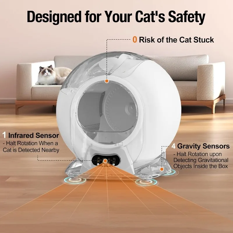 [La seguridad es lo primero] La caja de arena para gatos autolimpiante Povee está diseñada teniendo en cuenta la seguridad de su gato como principal preocupación.Con sensores que detectan la presencia de su gato y un mecanismo de retardo que evita que el ciclo de limpieza arranque mientras su gato está dentro, puede tener la tranquilidad de saber que su amigo felino está sano y salvo.
