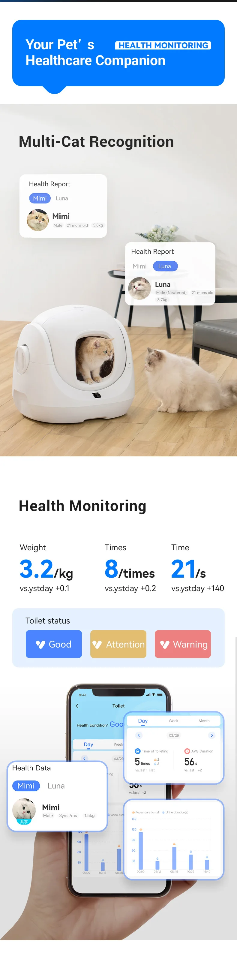 Caja de arena automática para gatos, inodoro inteligente de autolimpieza, antiolor, eléctrico, completamente cerrado, antisalpicaduras