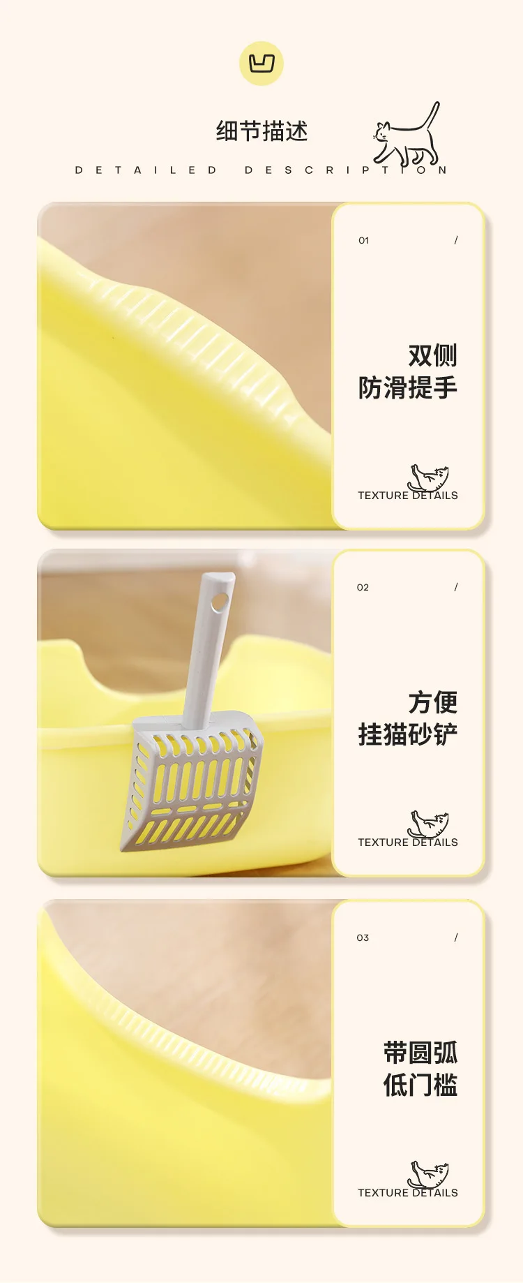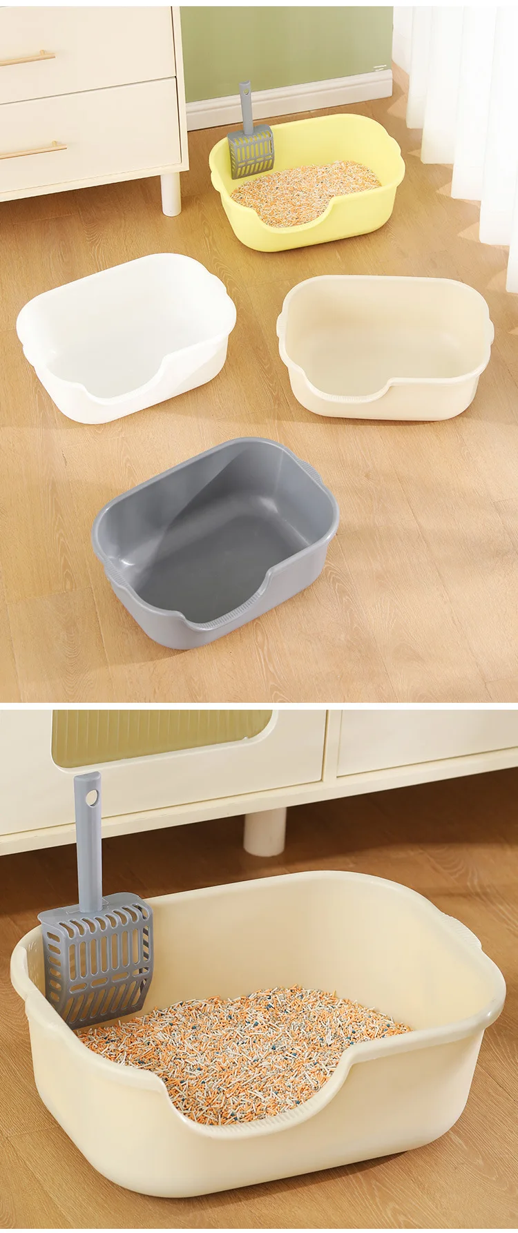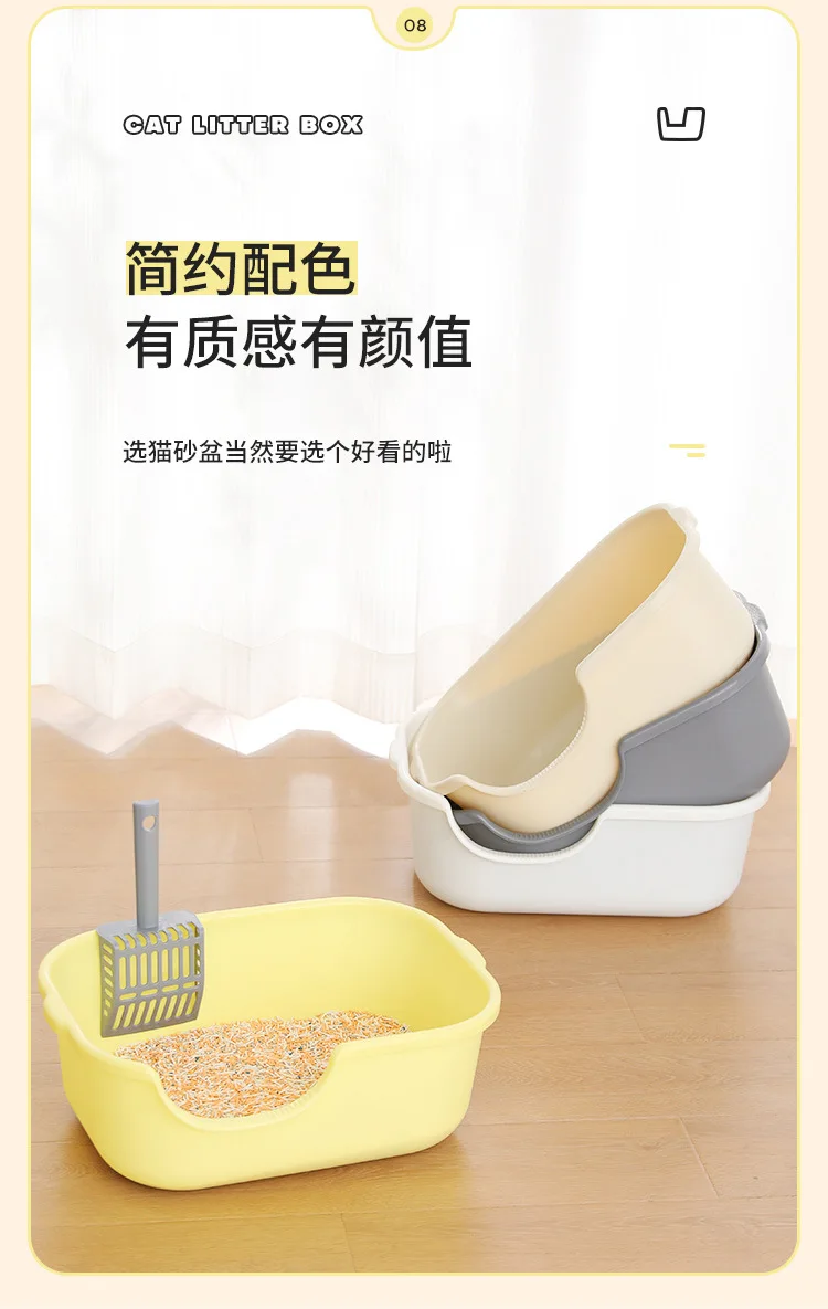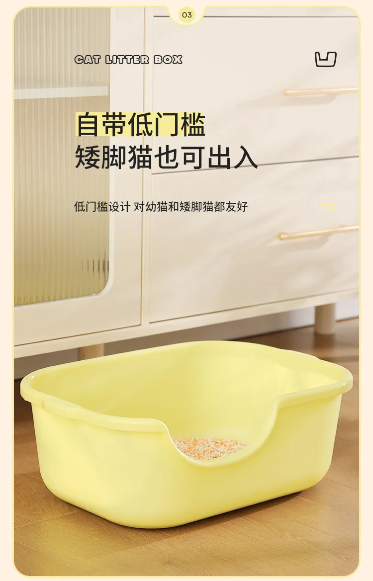 Caja de arena Extra grande para gatos, inodoro Extra grande abierto a prueba de salpicaduras para mascotas, caja de arena semicerrada para gatos, suministros para mascotas