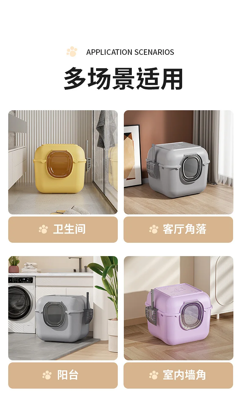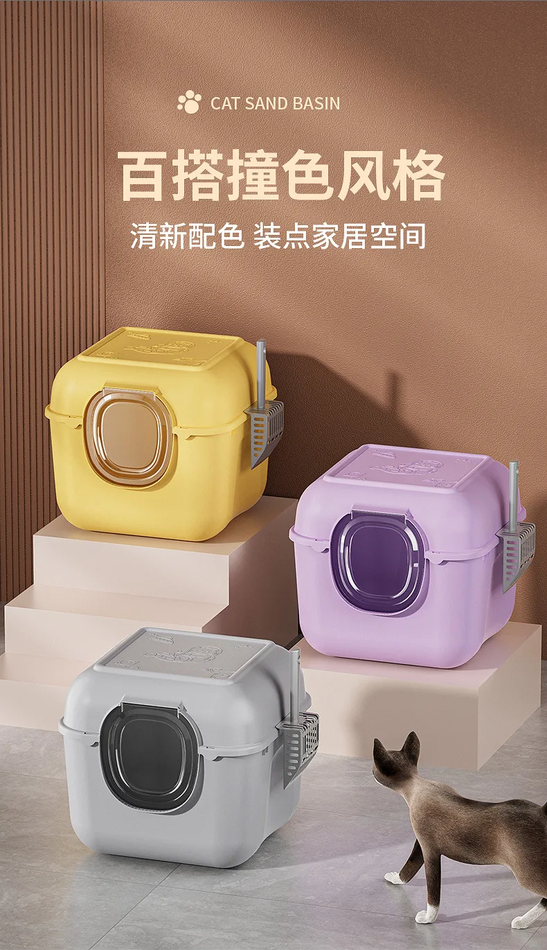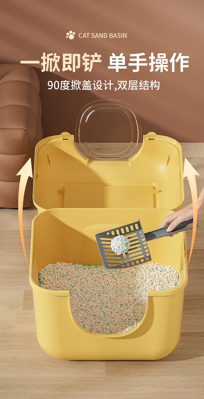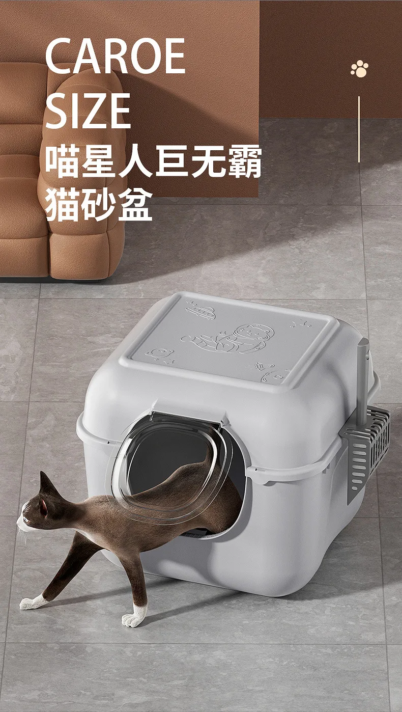 Caja de arena Extra grande para gatos, inodoro totalmente cerrado y a prueba de salpicaduras para mascotas, caja de arena abierta Extra grande para gatos, suministros para mascotas