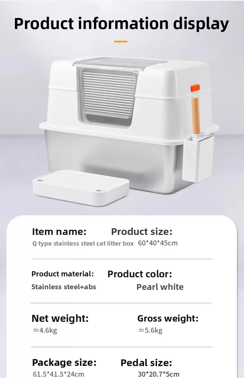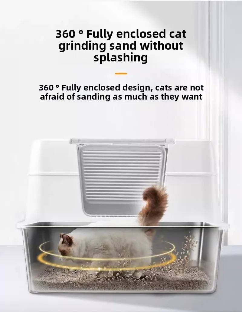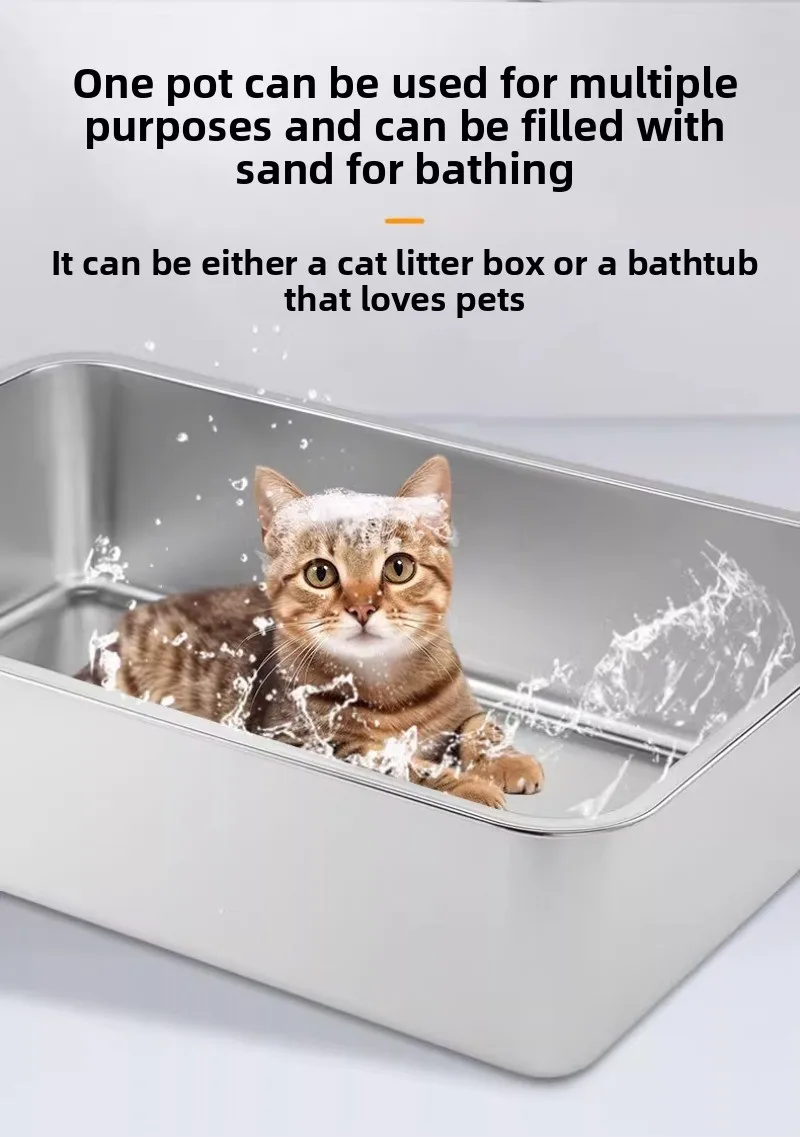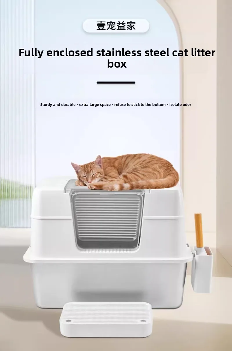 Caja de arena para gatos de acero inoxidable, extragrande, completamente cerrada, resistente al agua, fácil de limpiar, productos para mascotas, accesorios de limpieza, sartenes para gatos