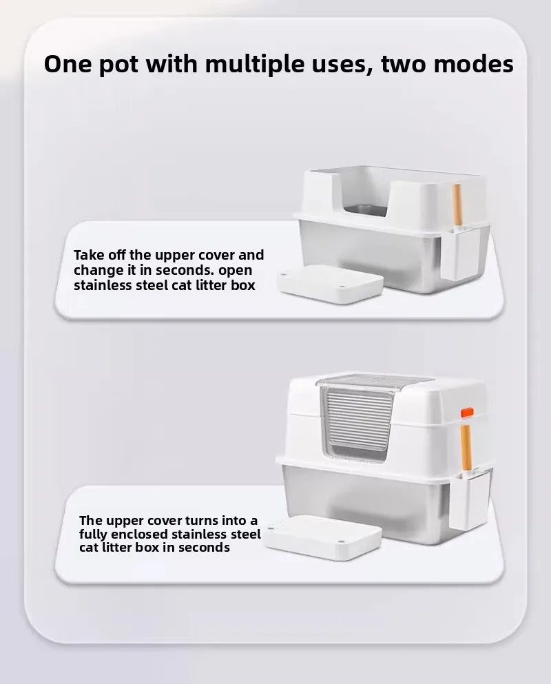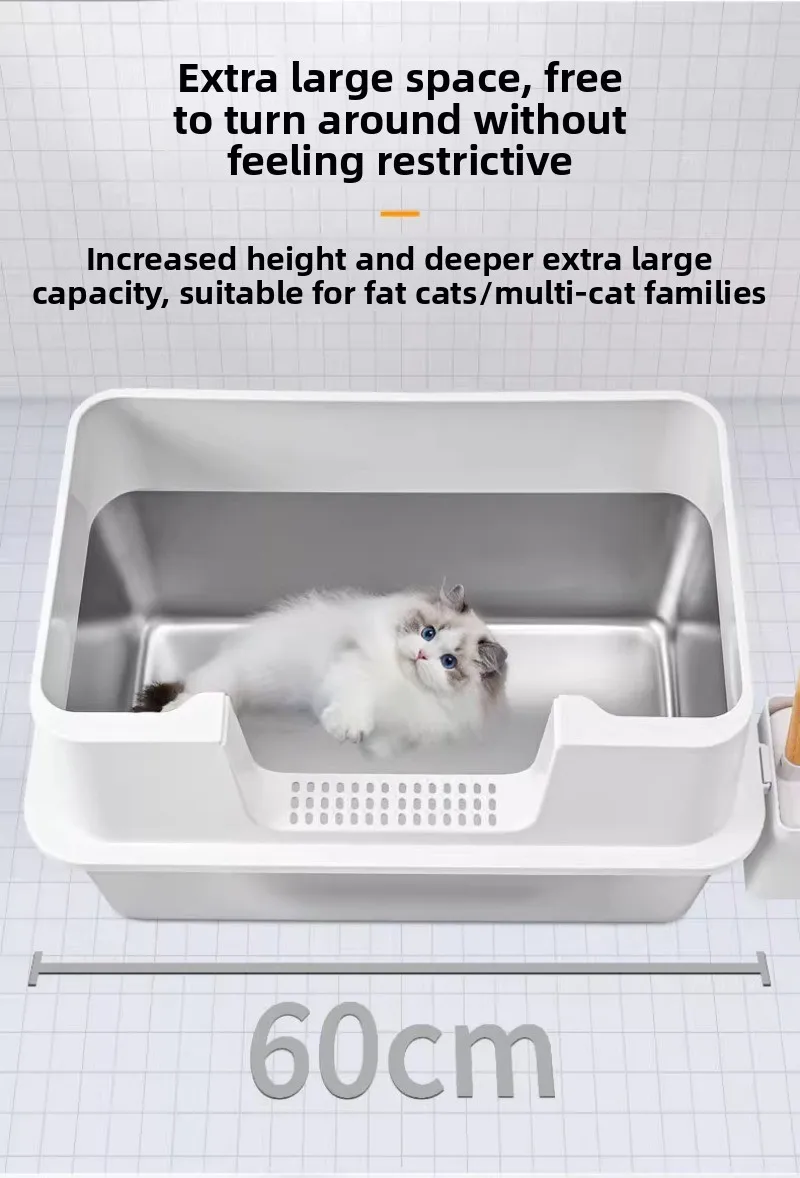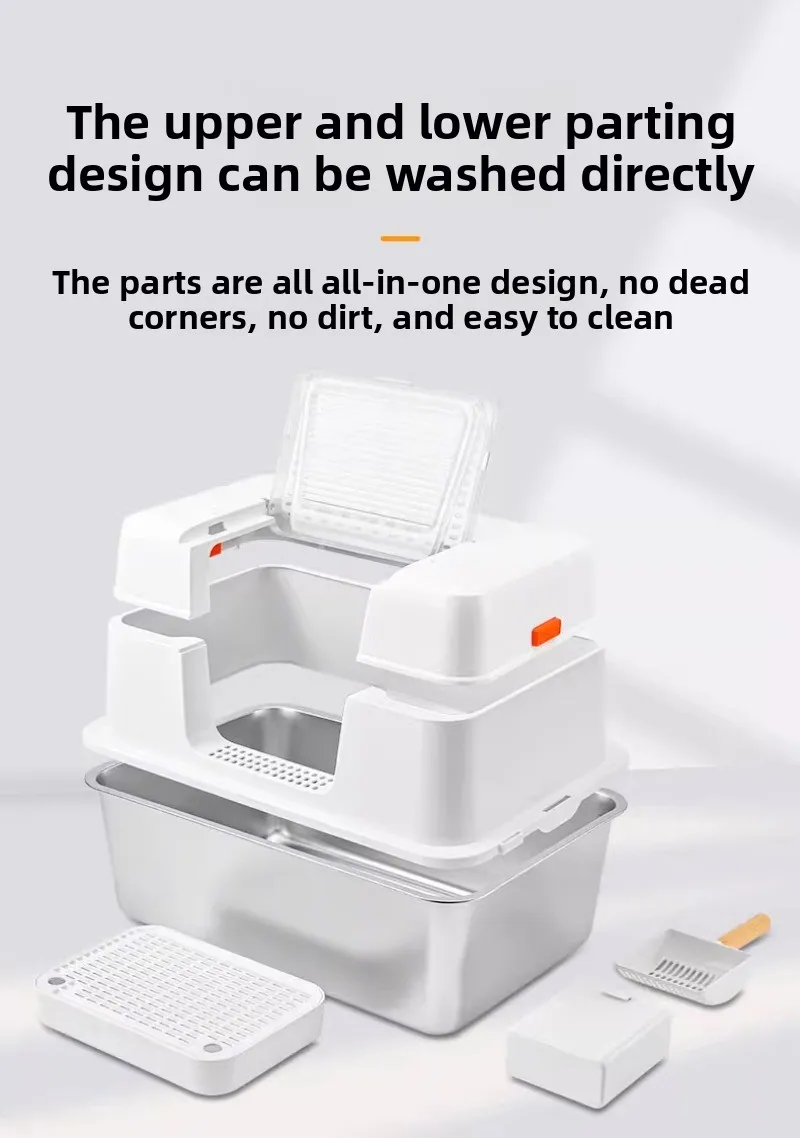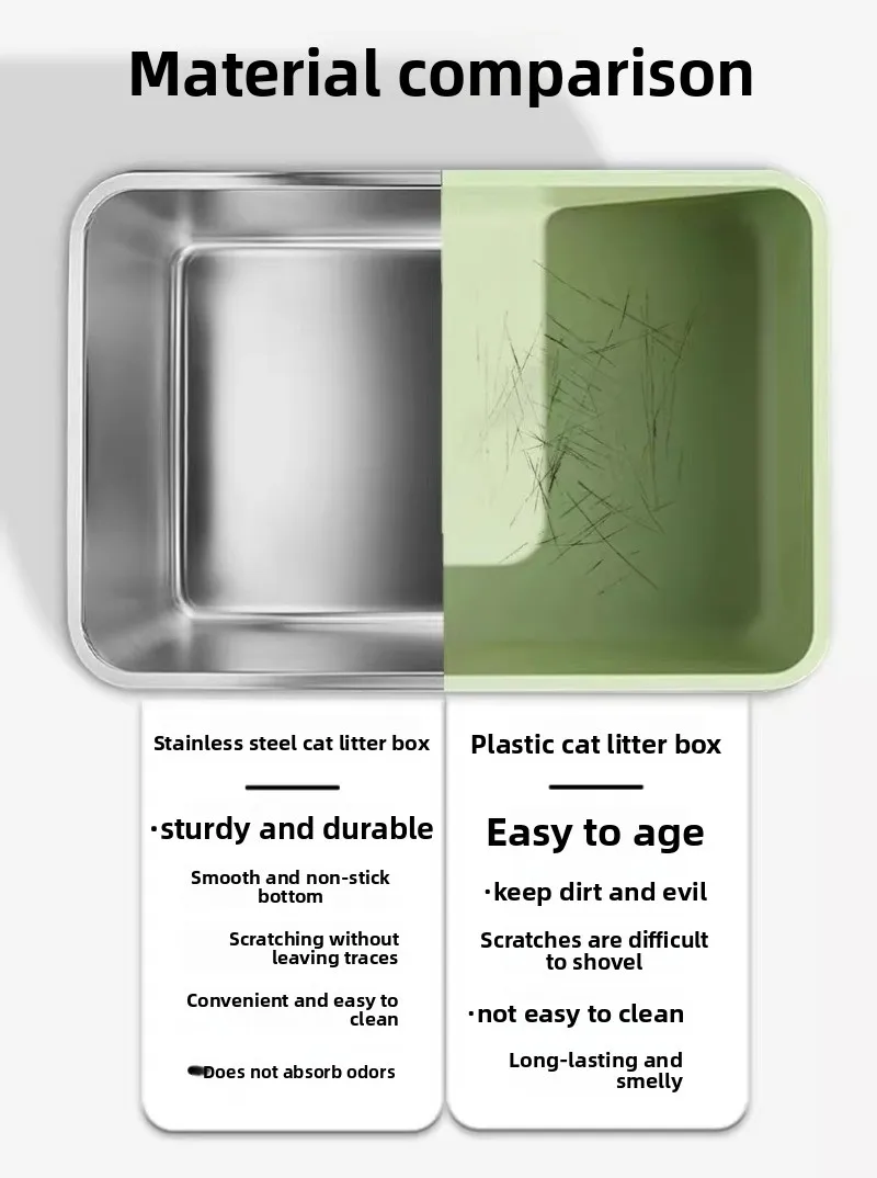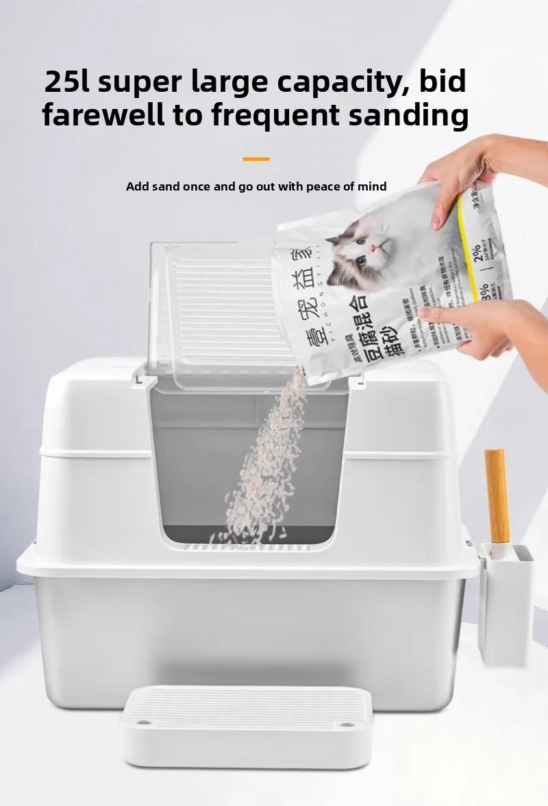Caja de arena para gatos de acero inoxidable, extragrande, completamente cerrada, resistente al agua, fácil de limpiar, productos para mascotas, accesorios de limpieza, sartenes para gatos