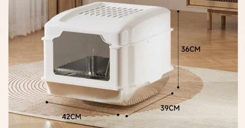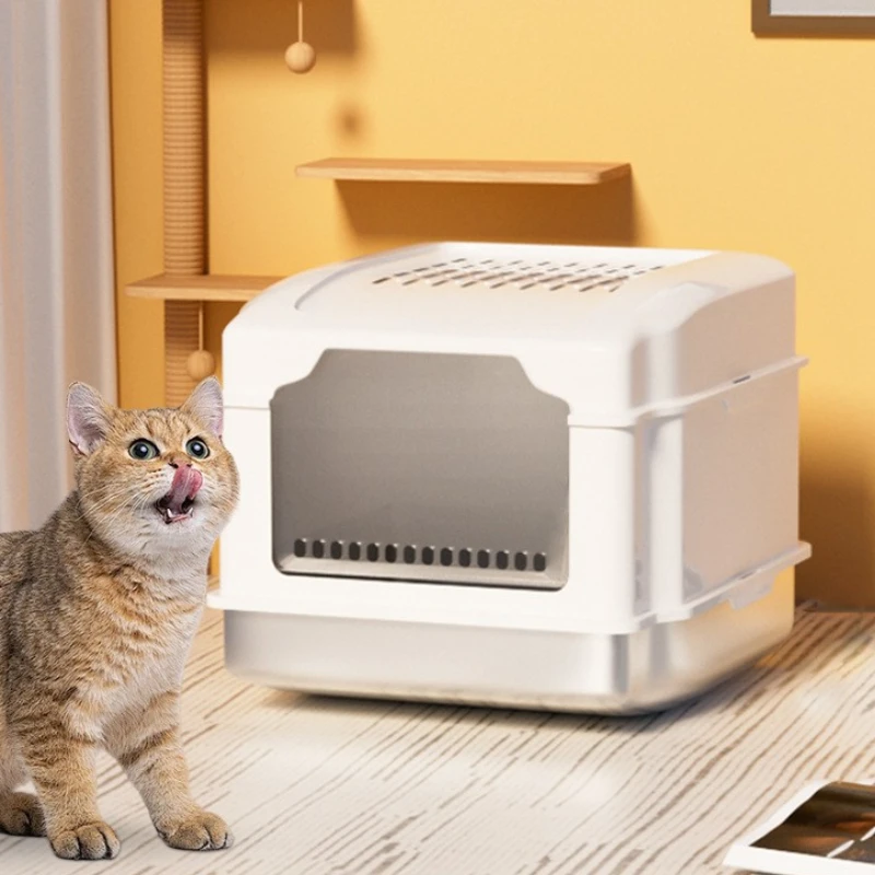 Caja de arena para gatos de acero inoxidable, gran espacio, inodoro para gatos completamente cerrado, sartenes grandes selladas a prueba de olores, suministros desmontables para mascotas