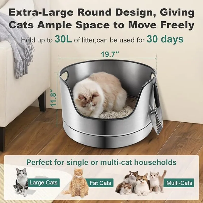 Caja de arena para gatos de acero inoxidable, inodoro grande para gatos, mascotas, cachorros, gatitos, cajas de arena para perros pequeños, gatitos, caja de arena semicerrada para gatos