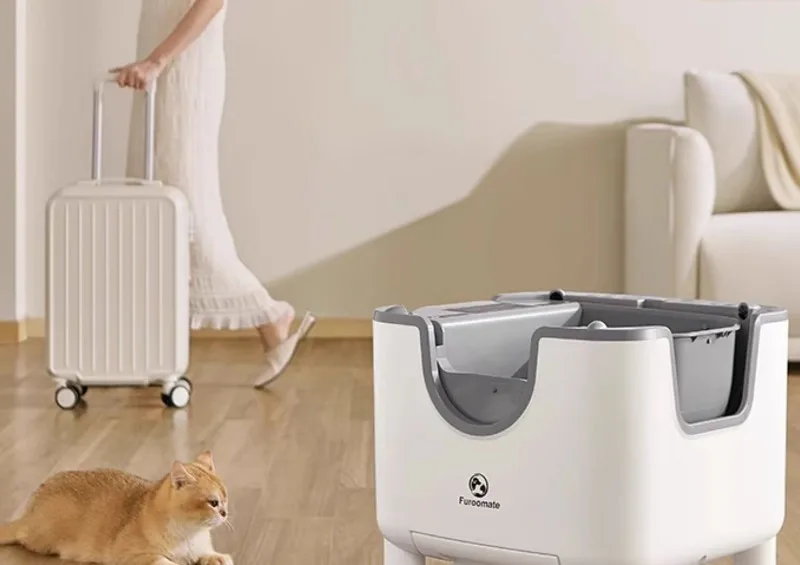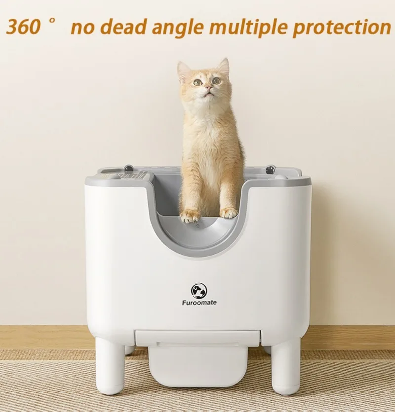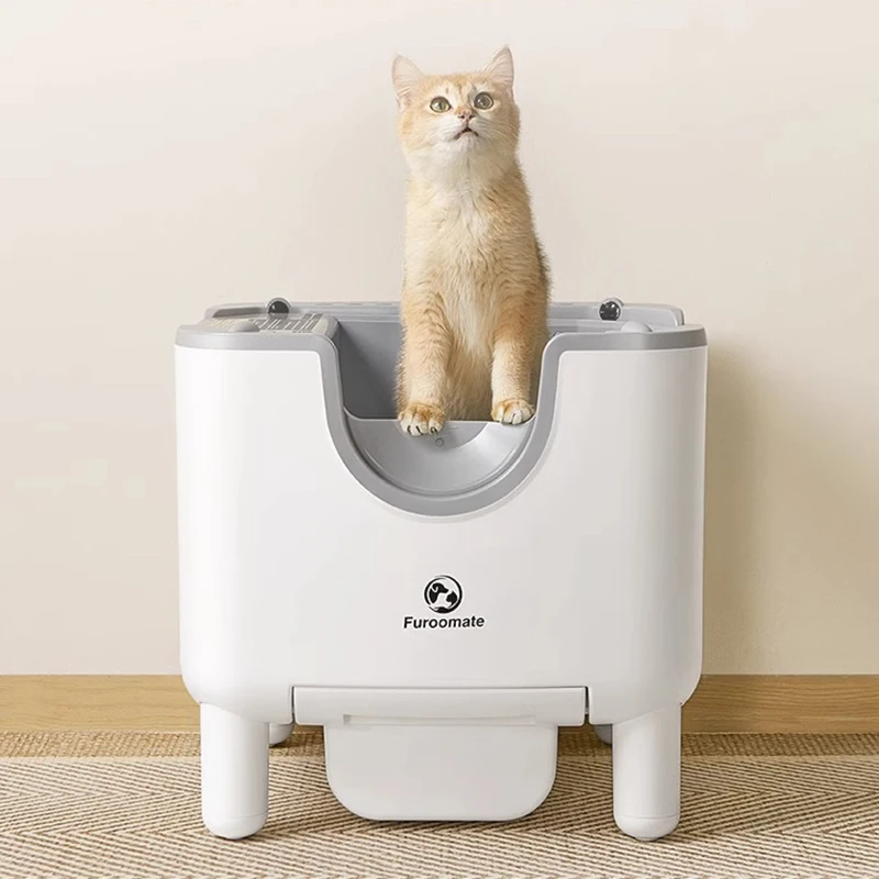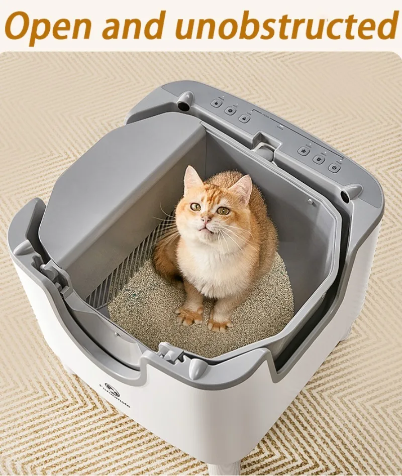Caja de arena para gatos autolimpiante inteligente, entrada superior automática, inodoro abierto para gatos, cajas de arena para gatos a prueba de olores de gran tamaño, cajas de arena automáticas