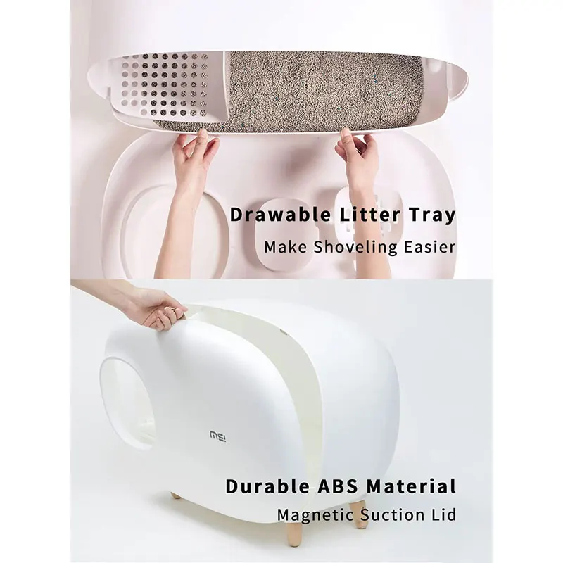 🐈 [Sophisticación en una caja] - Diseño dibujable para una limpieza más fácil.La bandeja de arena de la caja de arena para gatos se puede sacar de forma independiente, lo que facilita el palado.Simplemente deslícelo hacia afuera, despeje y reemplácelo.