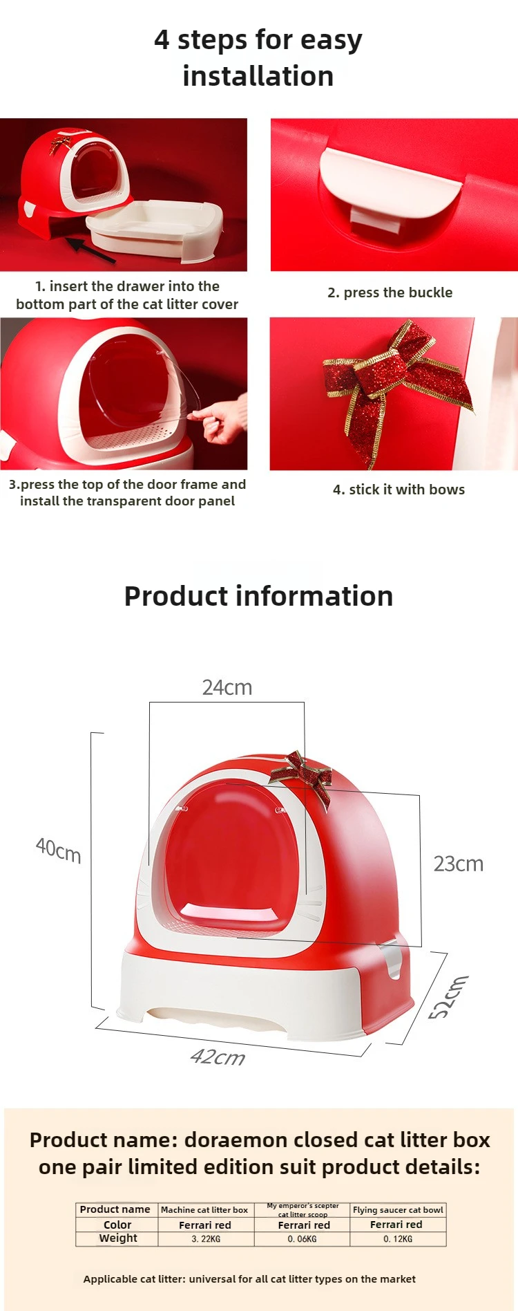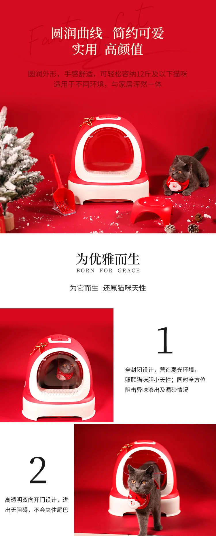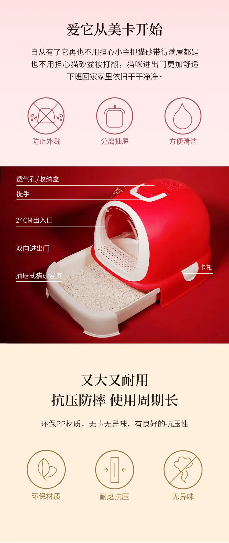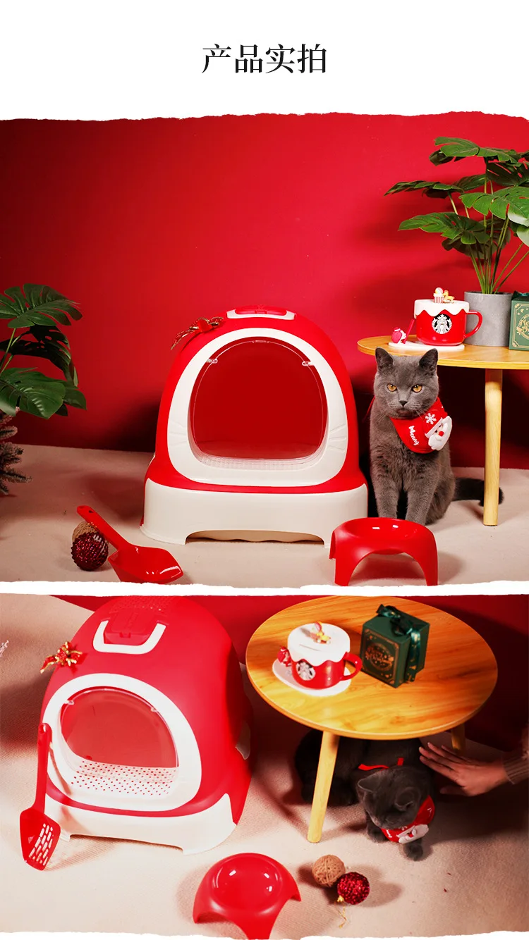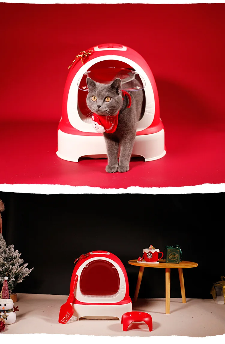 Caja de arena para gatos, cajón de gran tamaño completamente cerrado y a prueba de salpicaduras, inodoro para gatos, suministros para mascotas de gran tamaño
