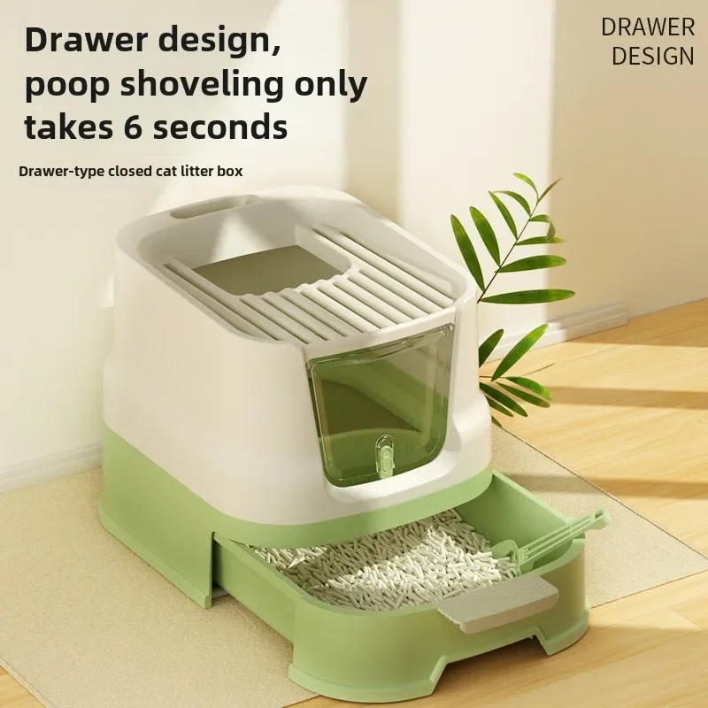 Caja de arena para gatos con cola rizada, cajón de inodoro cerrado para mascotas, desodorante grande a prueba de salpicaduras, gran espacio para gatos, artículos para mascotas