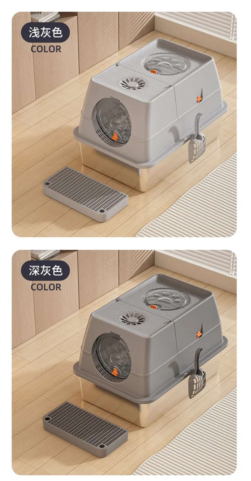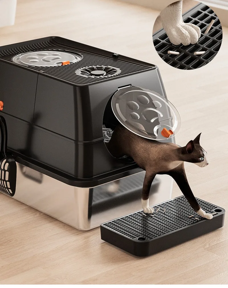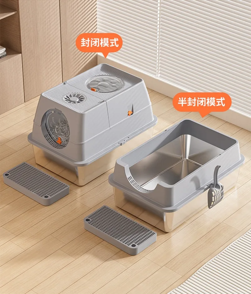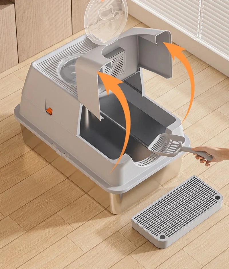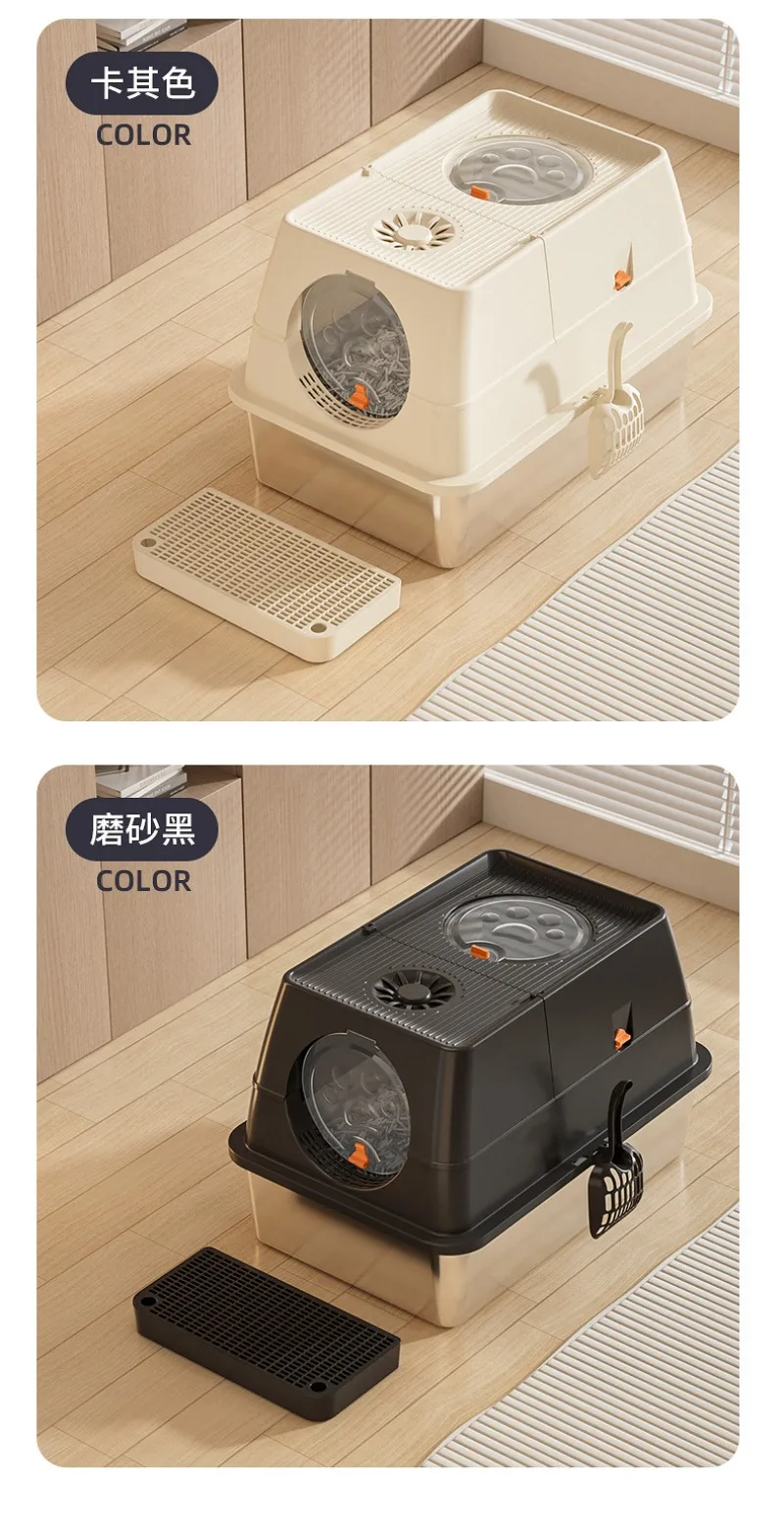 Caja de arena para gatos completamente cerrada de acero inoxidable, inodoro Extra grande a prueba de salpicaduras para gatos, productos de limpieza para mascotas, suministros, sartenes