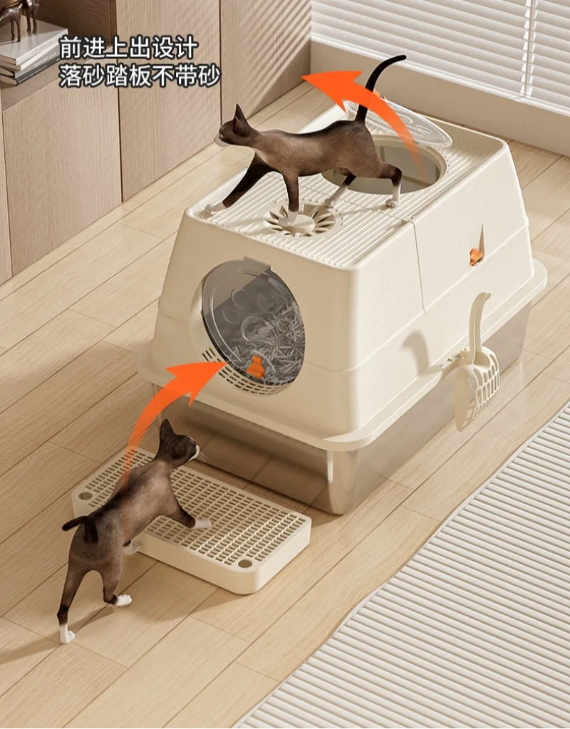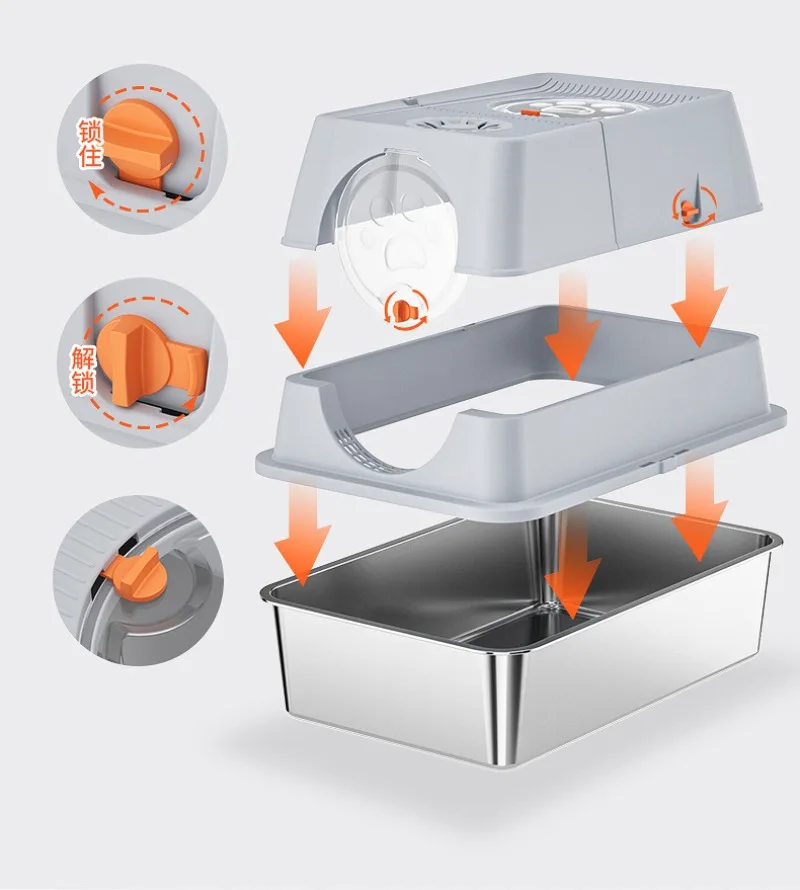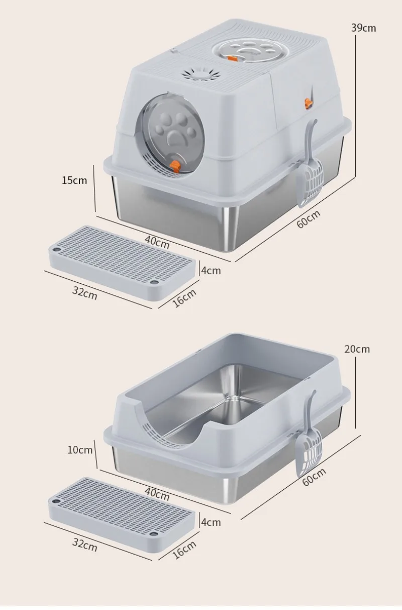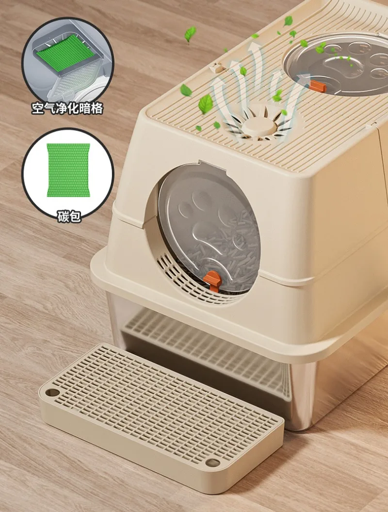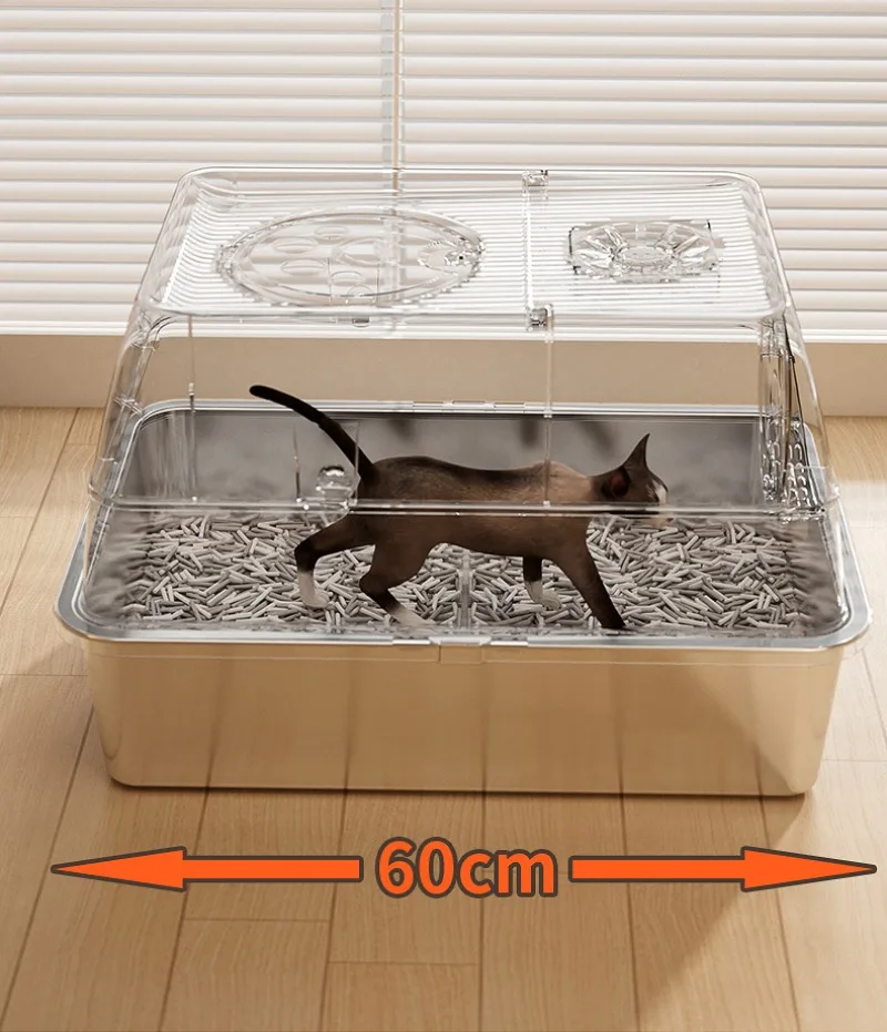 Caja de arena para gatos completamente cerrada de acero inoxidable, inodoro Extra grande a prueba de salpicaduras para gatos, productos de limpieza para mascotas, suministros, sartenes