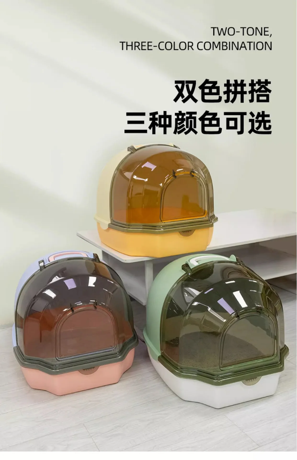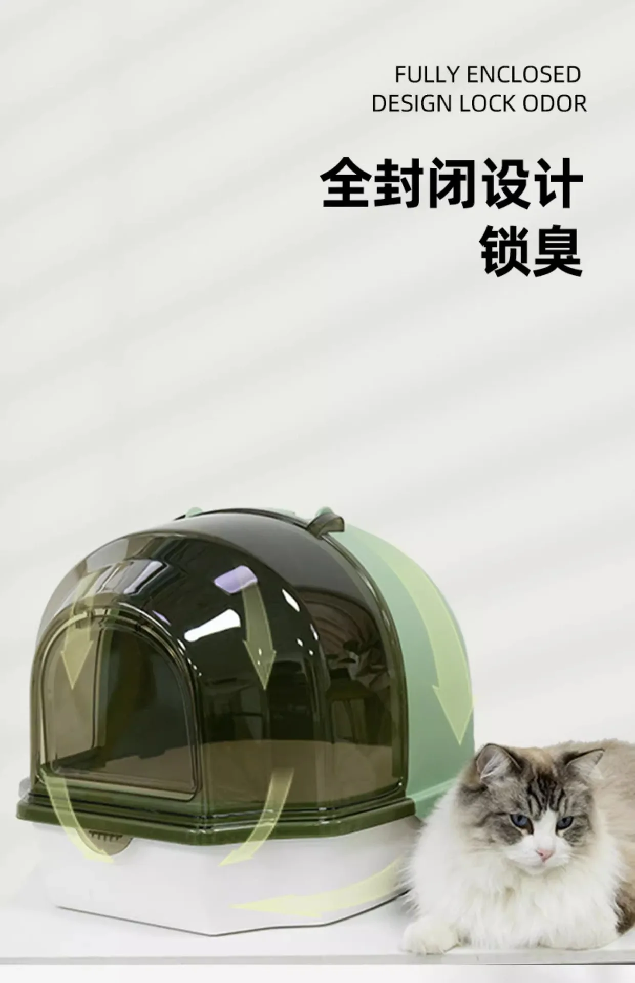 Caja de arena para gatos completamente cerrada, cápsula espacial, inodoro para mascotas, gran espacio, doble puerta, entrada y salida, caja de arena semicerrada para gatos