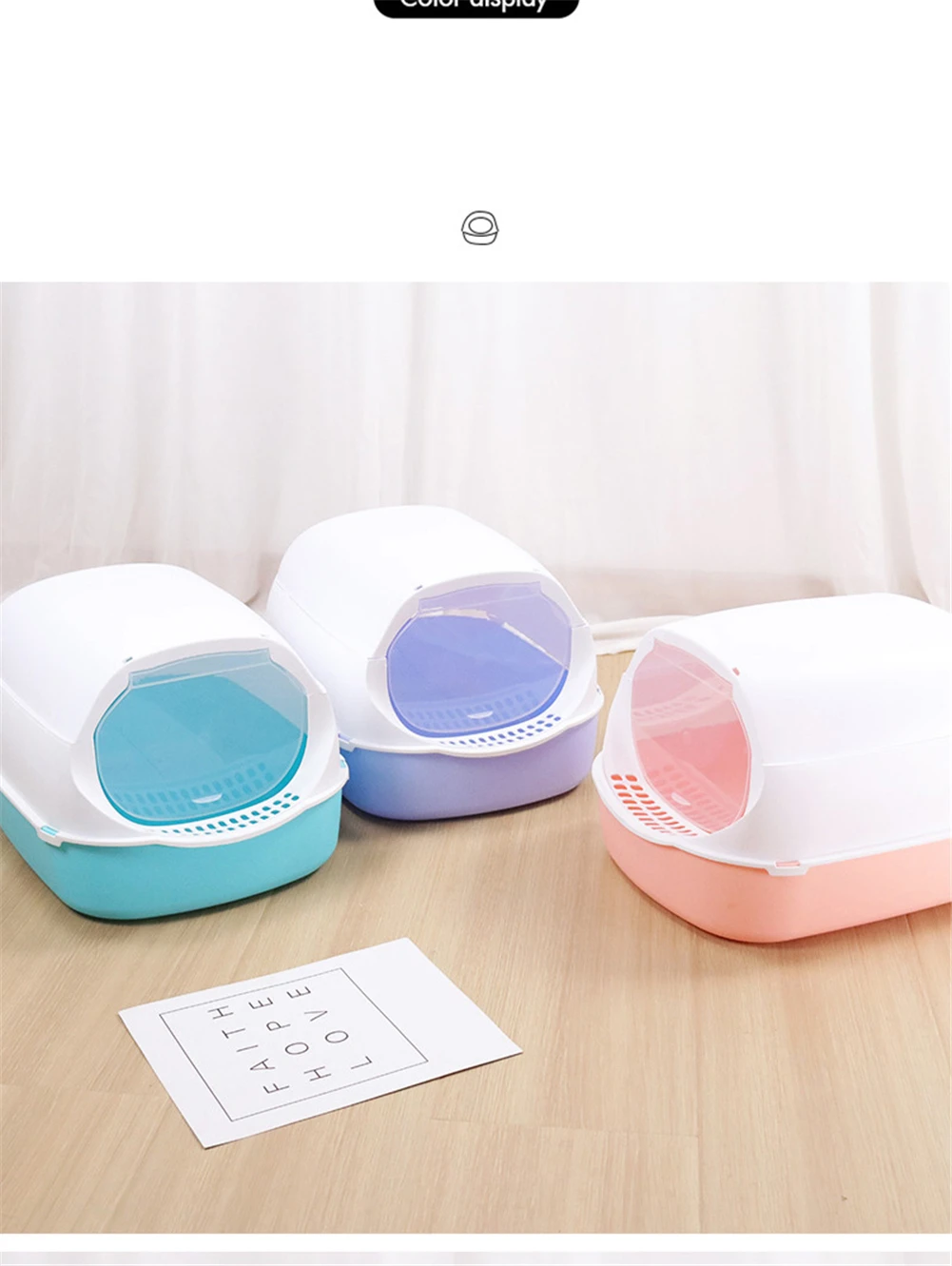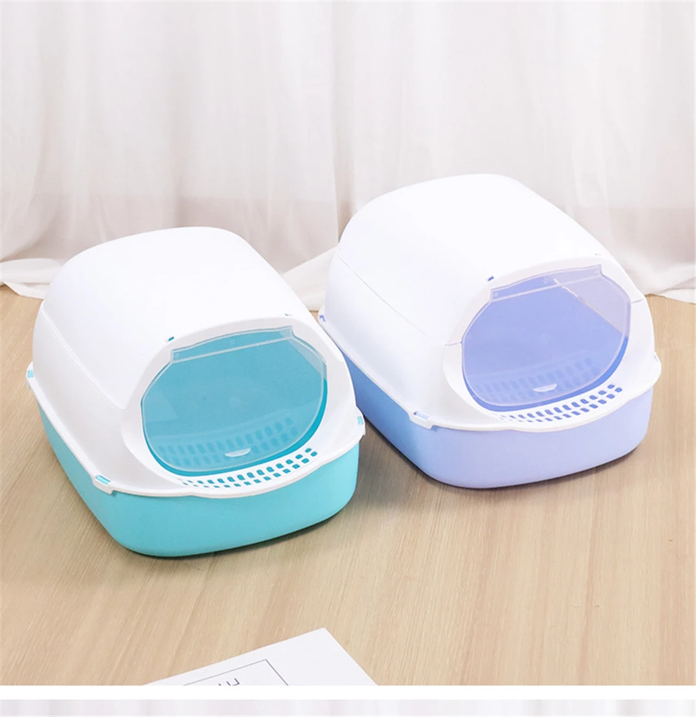 Caja de arena para gatos completamente cerrada para gatitos, desodorante de plástico, antisalpicaduras, lavabo de arena interior para el cuidado de los gatos, fácil de limpiar