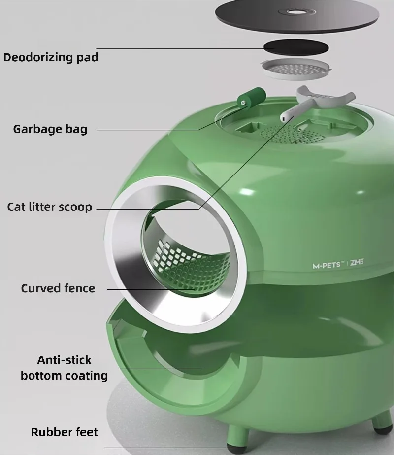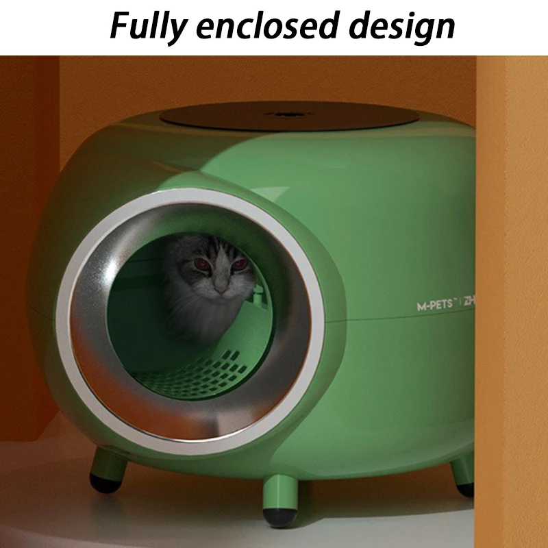 Chasis de arco grande sin costuras, ahorra arena y limpia sin ángulos muertos.El diseño completamente cerrado proporciona a los gatos suficiente privacidad al tiempo que garantiza la transmisión de luz y la seguridad.Gran espacio, recomendado para gatos de menos de 10 kg.Almacenamiento con compartimento oculto superior