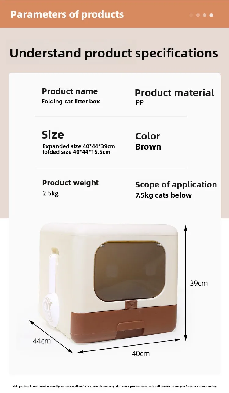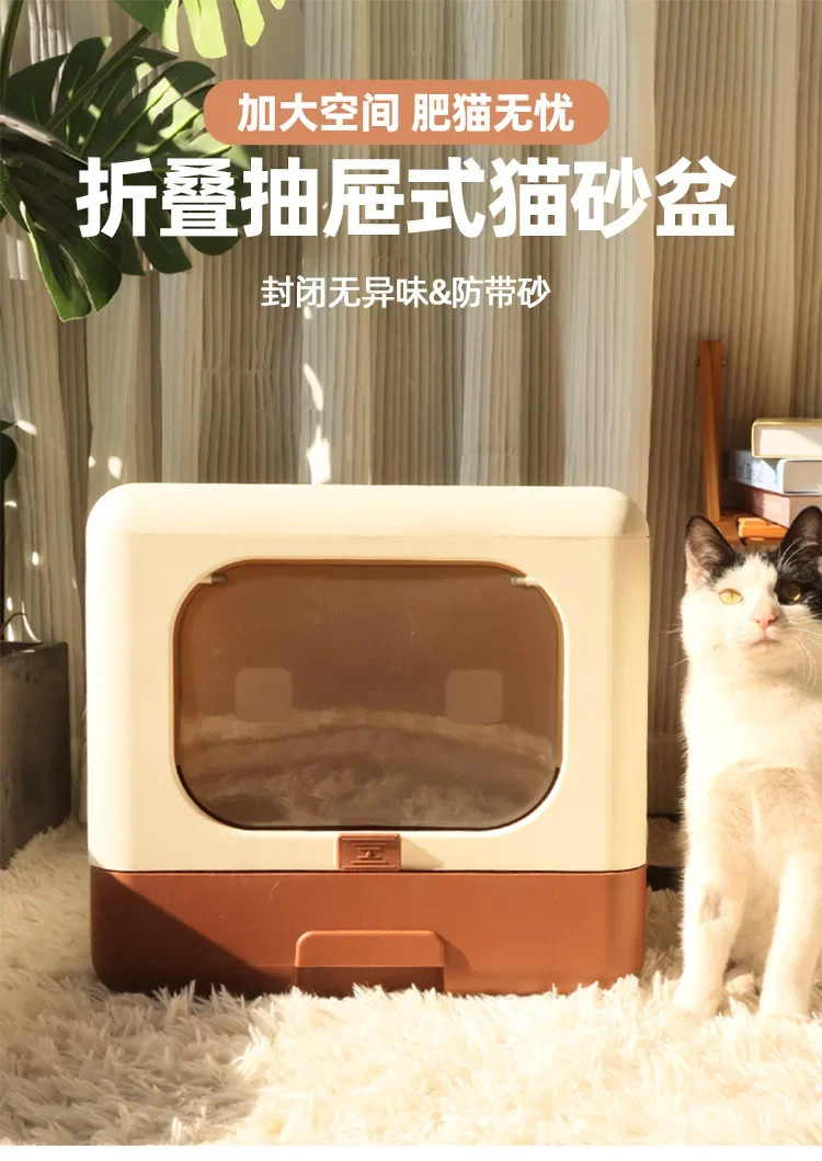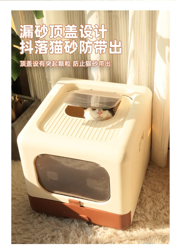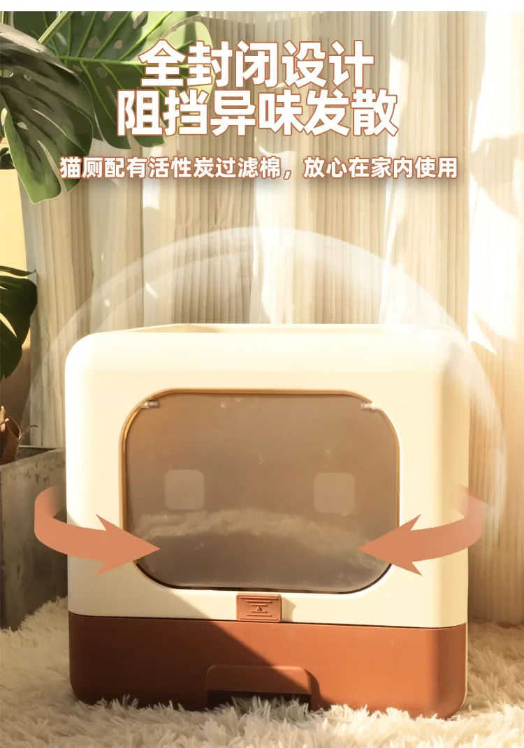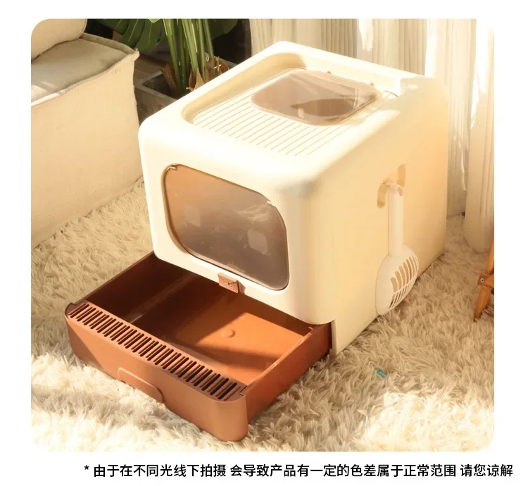 Caja de arena para gatos, desodorante plegable grande, inodoro para mascotas, cajón a prueba de salpicaduras, inodoro para mascotas, lavabo de mierda para gatos superior para el hogar