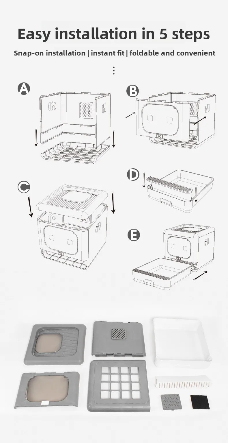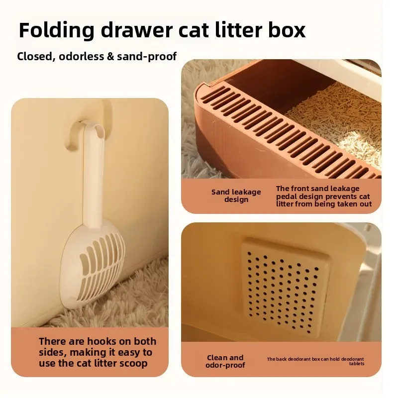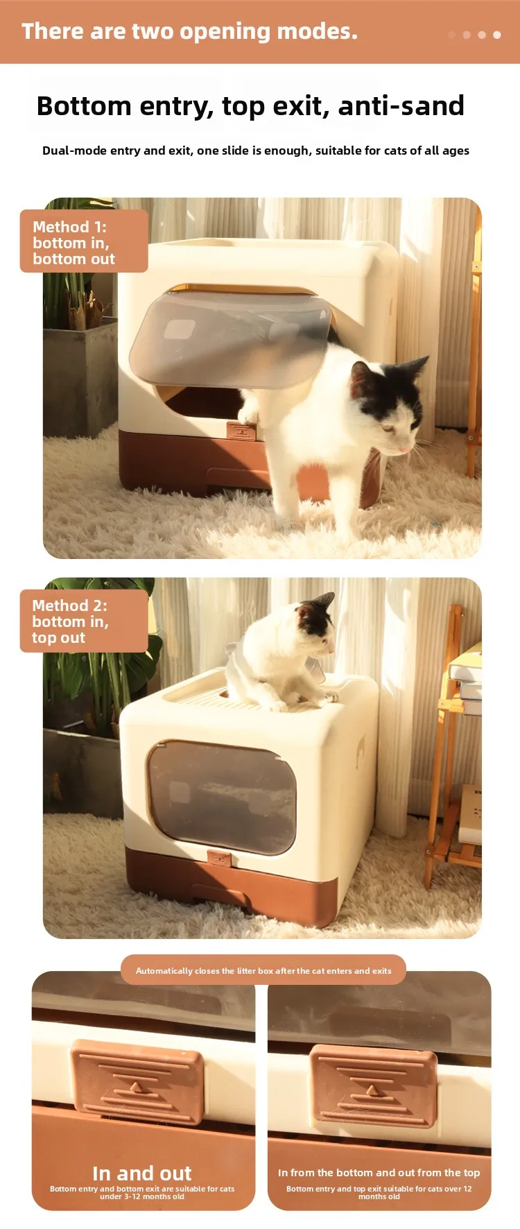 Caja de arena para gatos, desodorante plegable grande, inodoro para mascotas, cajón a prueba de salpicaduras, inodoro para mascotas, lavabo de mierda para gatos superior para el hogar